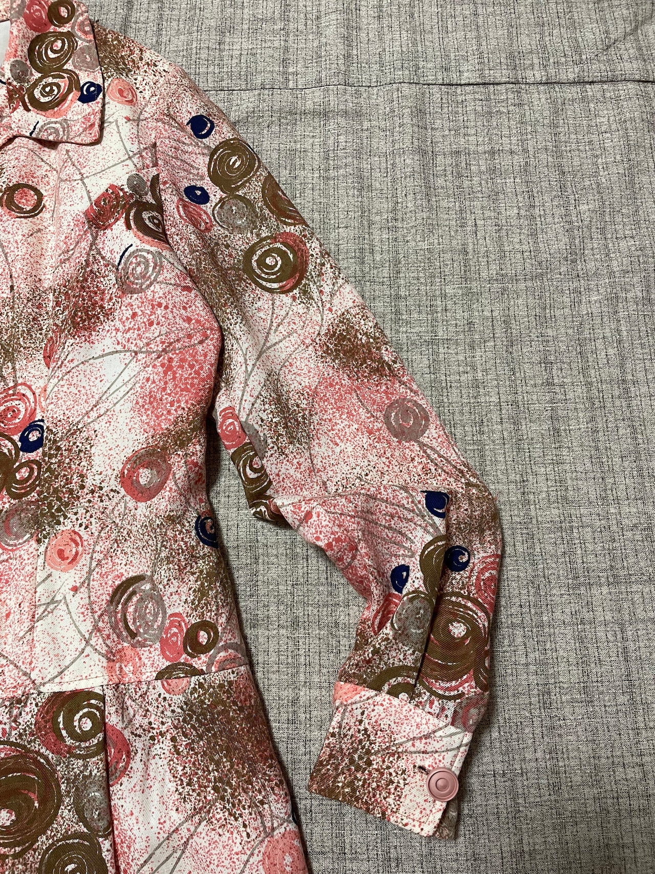 なんだか縁起が良さそうな柄がステキな70sビンテージニュアンスパターンドレス。