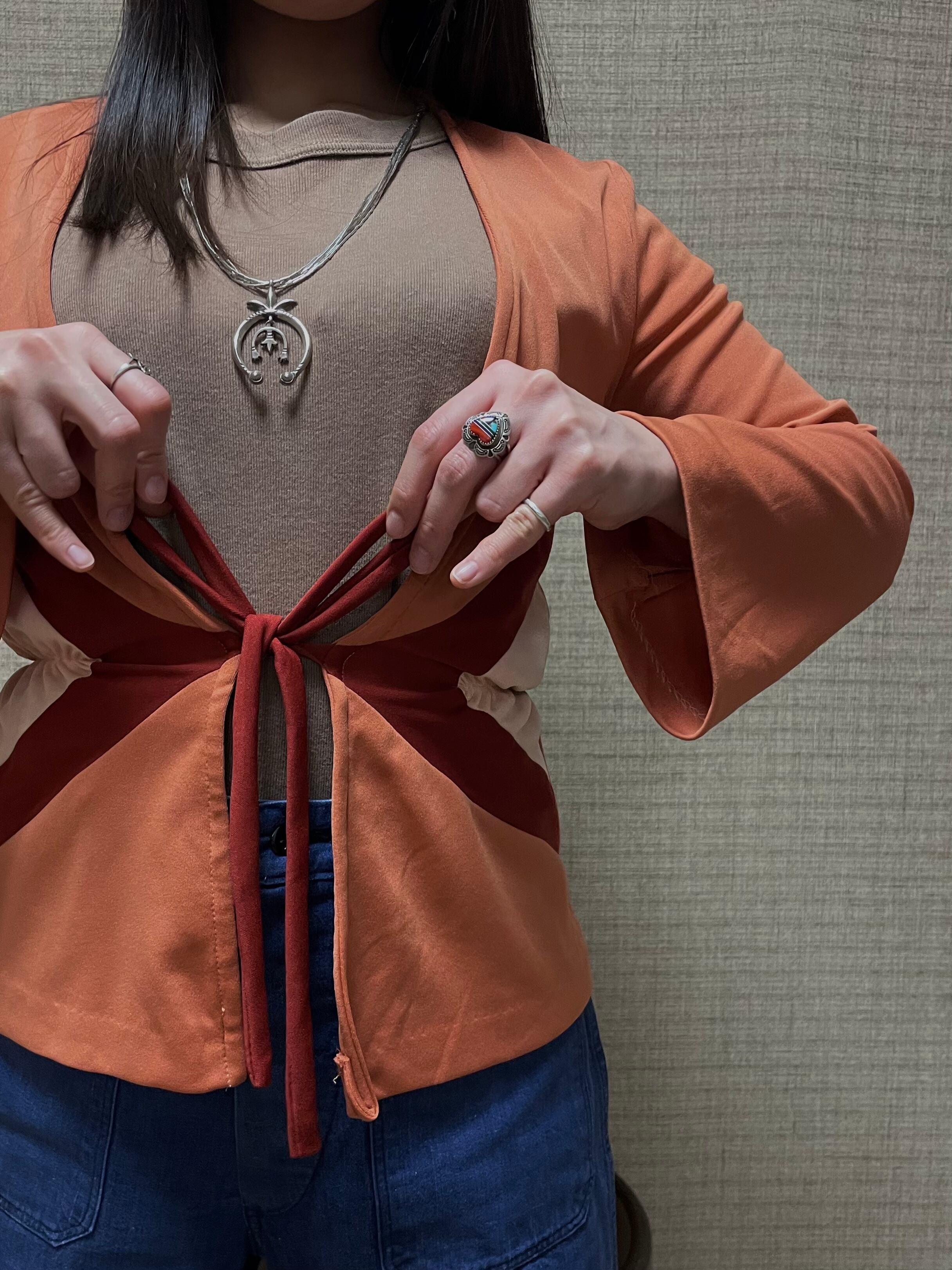 合わせやすいライトブラウンベースの70sビンテージセットアップ。