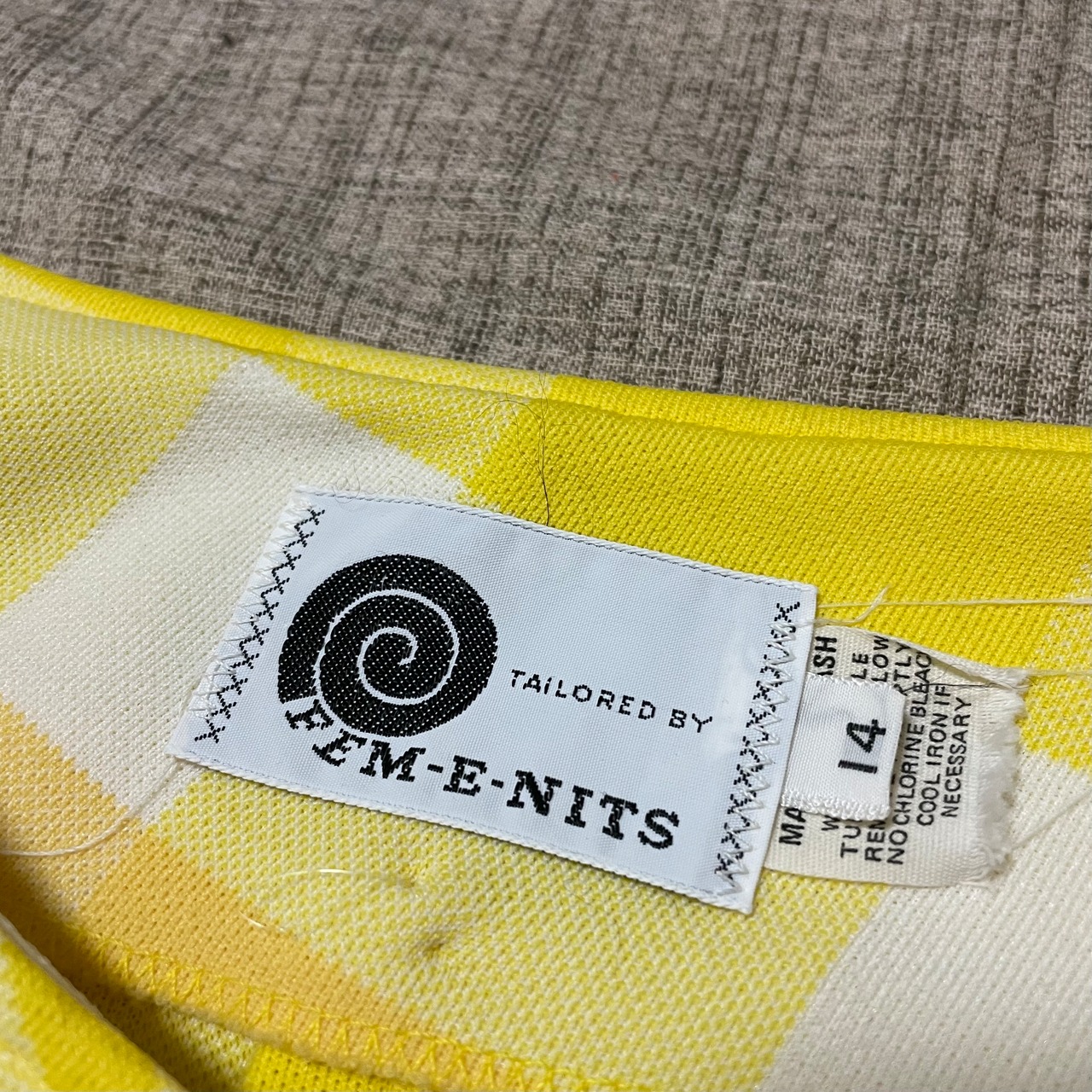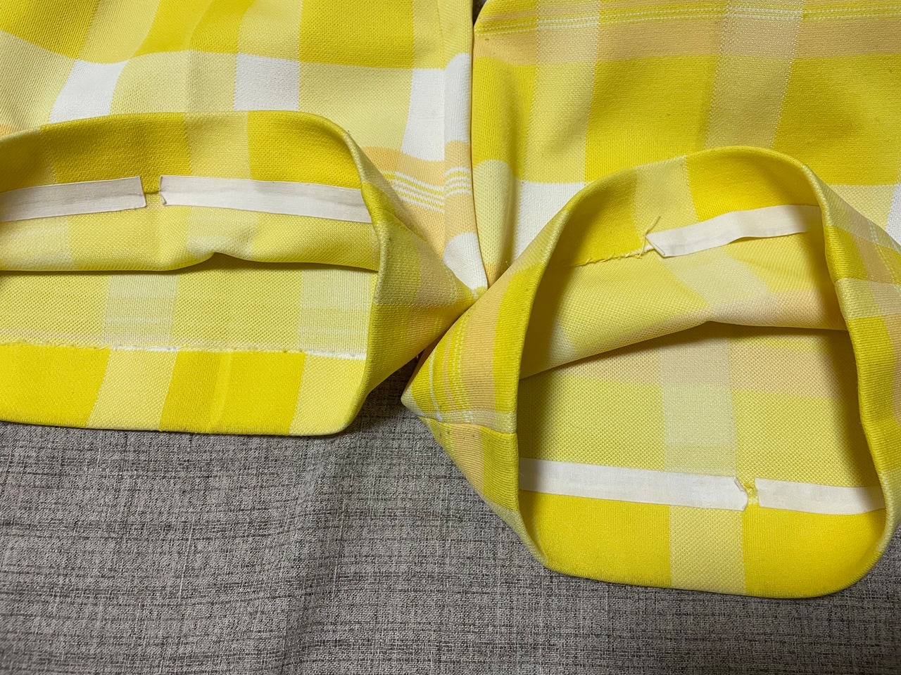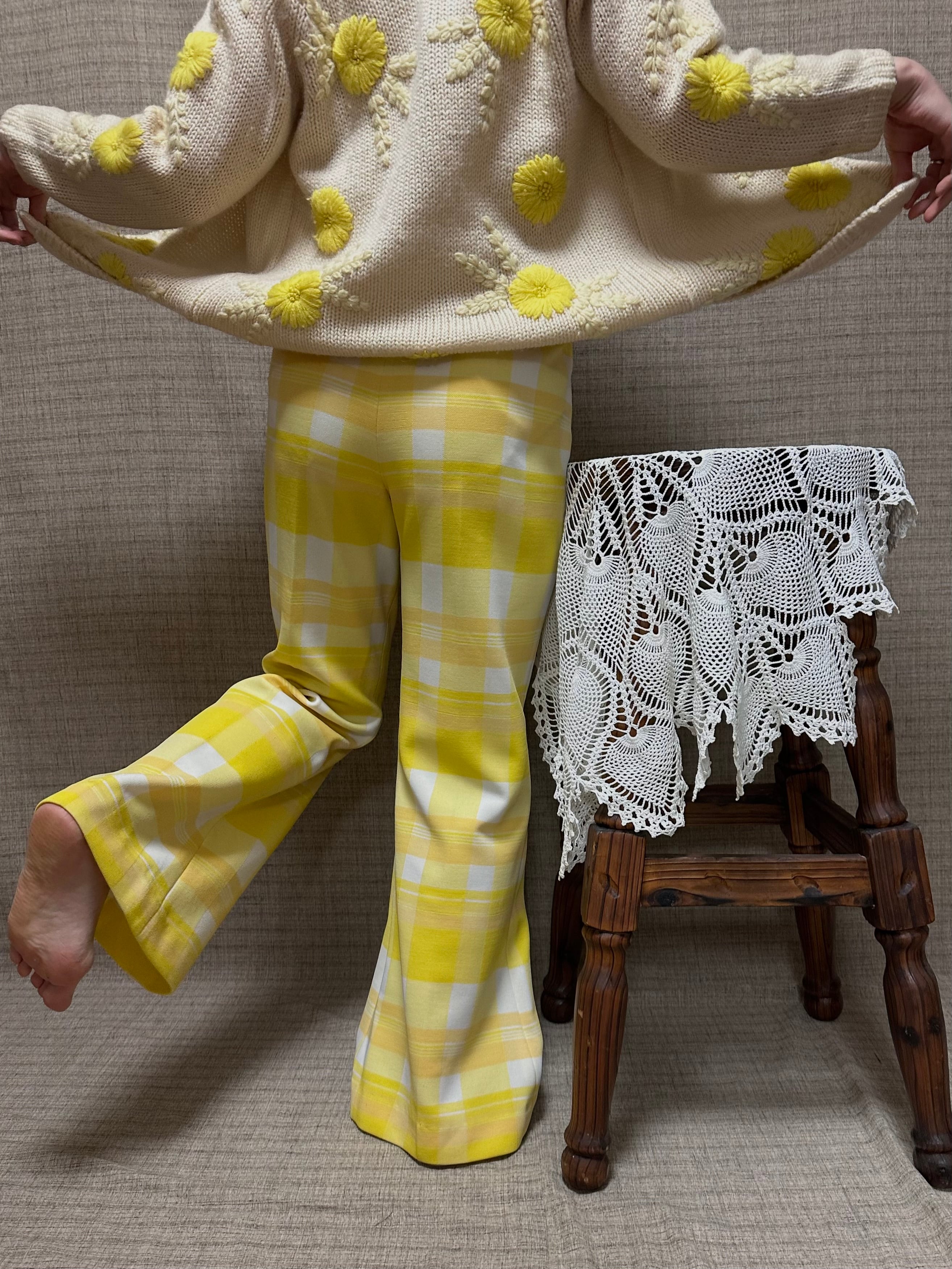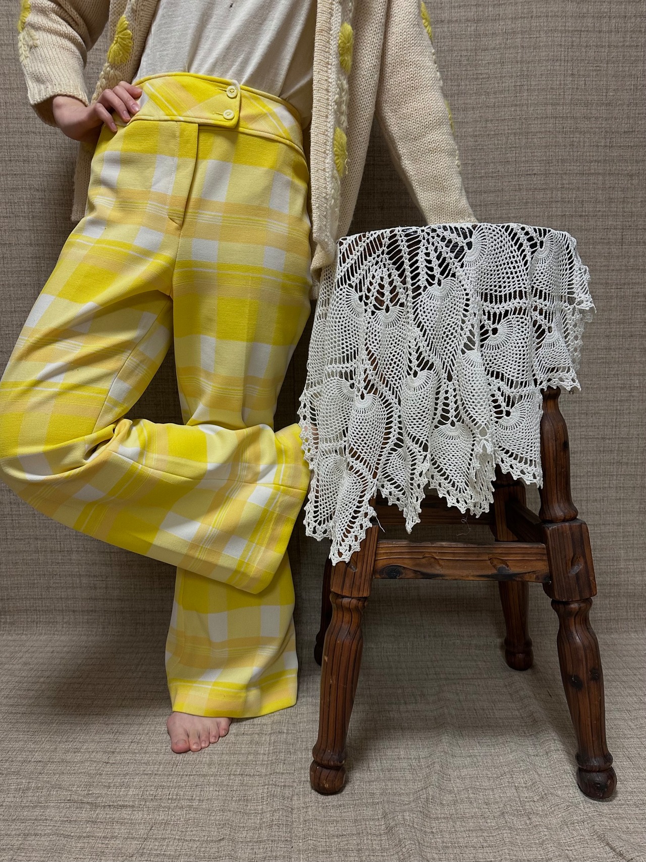 イエロー&ホワイトのチェックデザインが可愛い70sビンテージフレアパンツ。