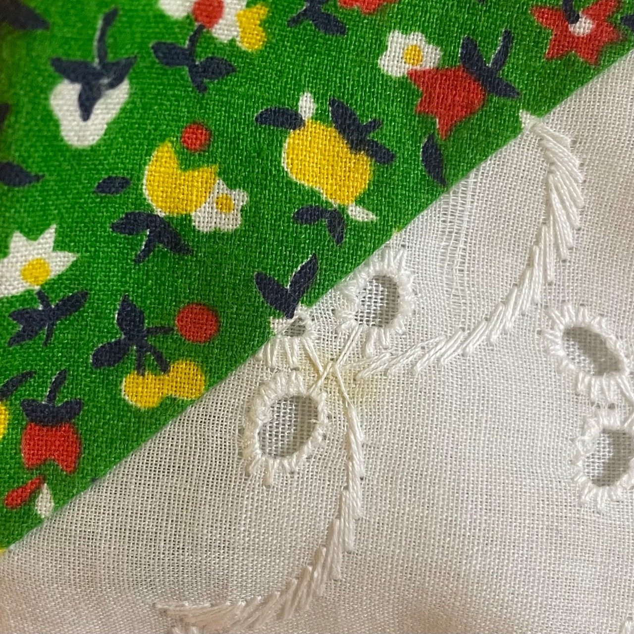 ポップなお花柄やレース生地を丁寧に繋ぎ合わせたパッチワークが可愛い70sスカート。