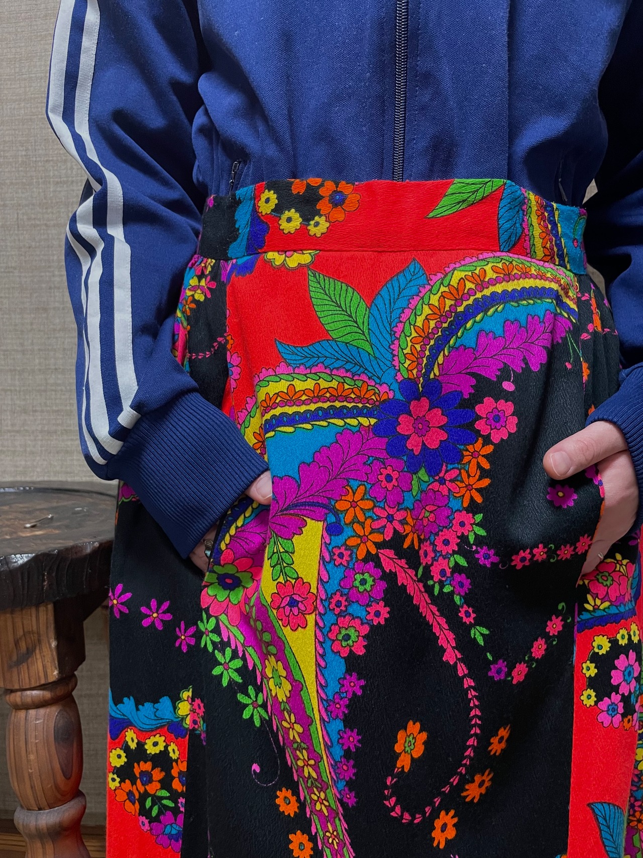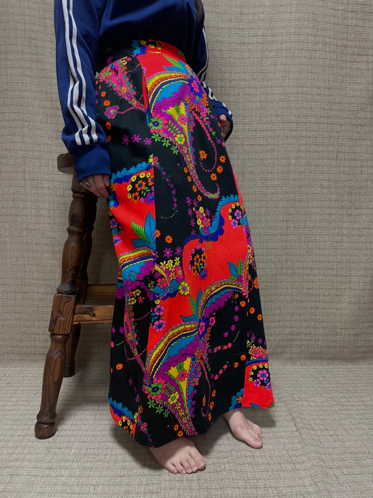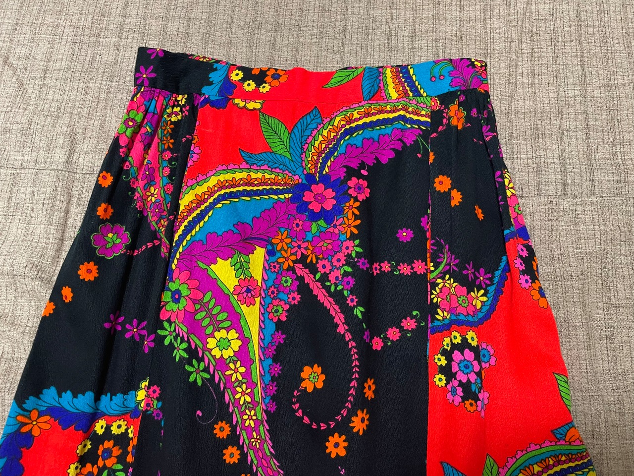 パワフルなカラーリングが目を惹く70sビンテージサイケデリックスカート。