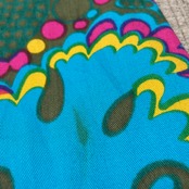 綺麗なブルーボディに映えた様々なフルーツ柄が可愛い70sビンテージドレス。