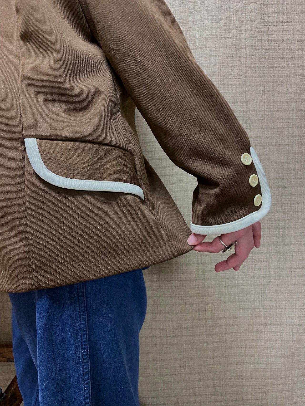 落ち着いたブラウンカラーでコーディネートに取り入れやすい70sビンテージジャケット。