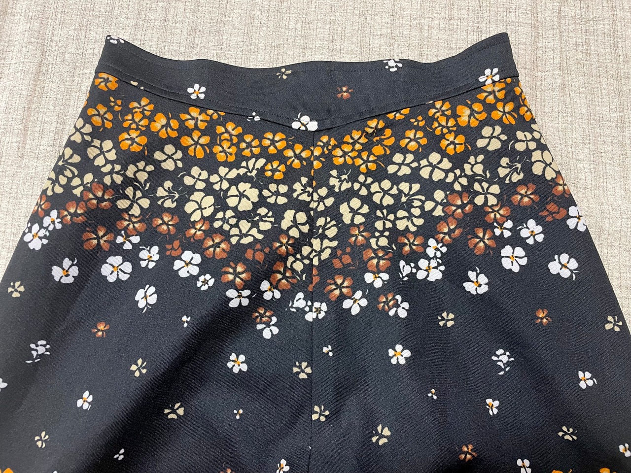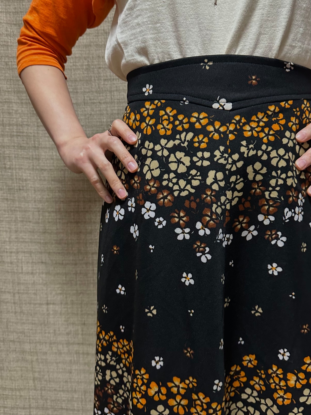 ブラックボディに暖色カラーなお花が可愛い70sビンテージスカート。