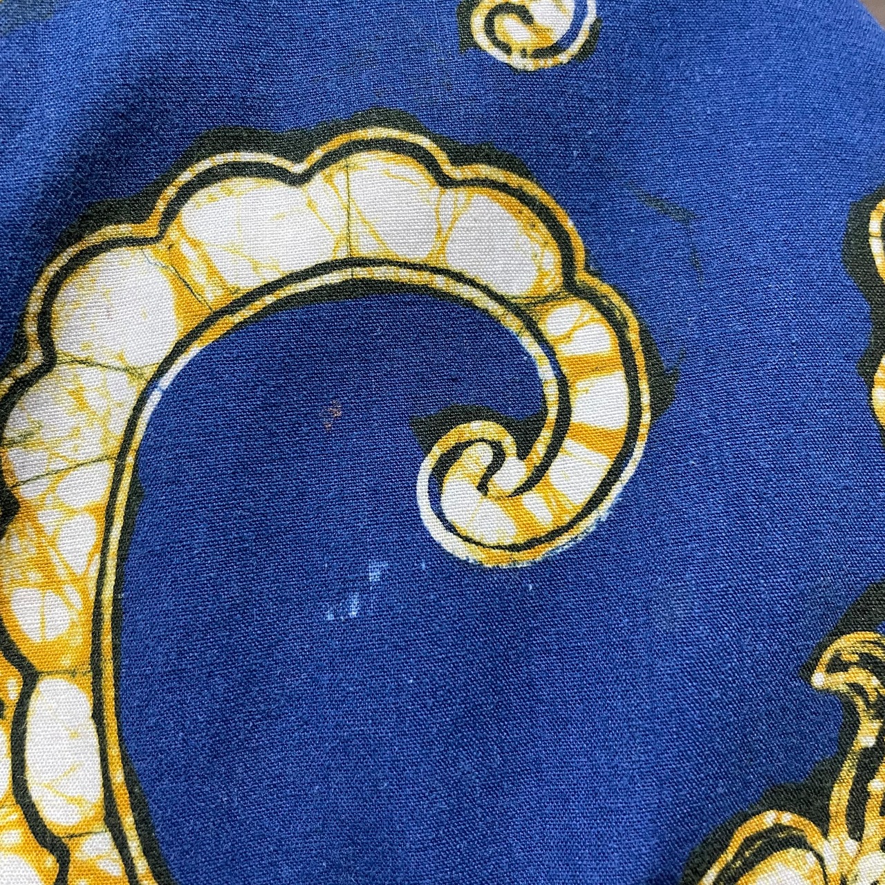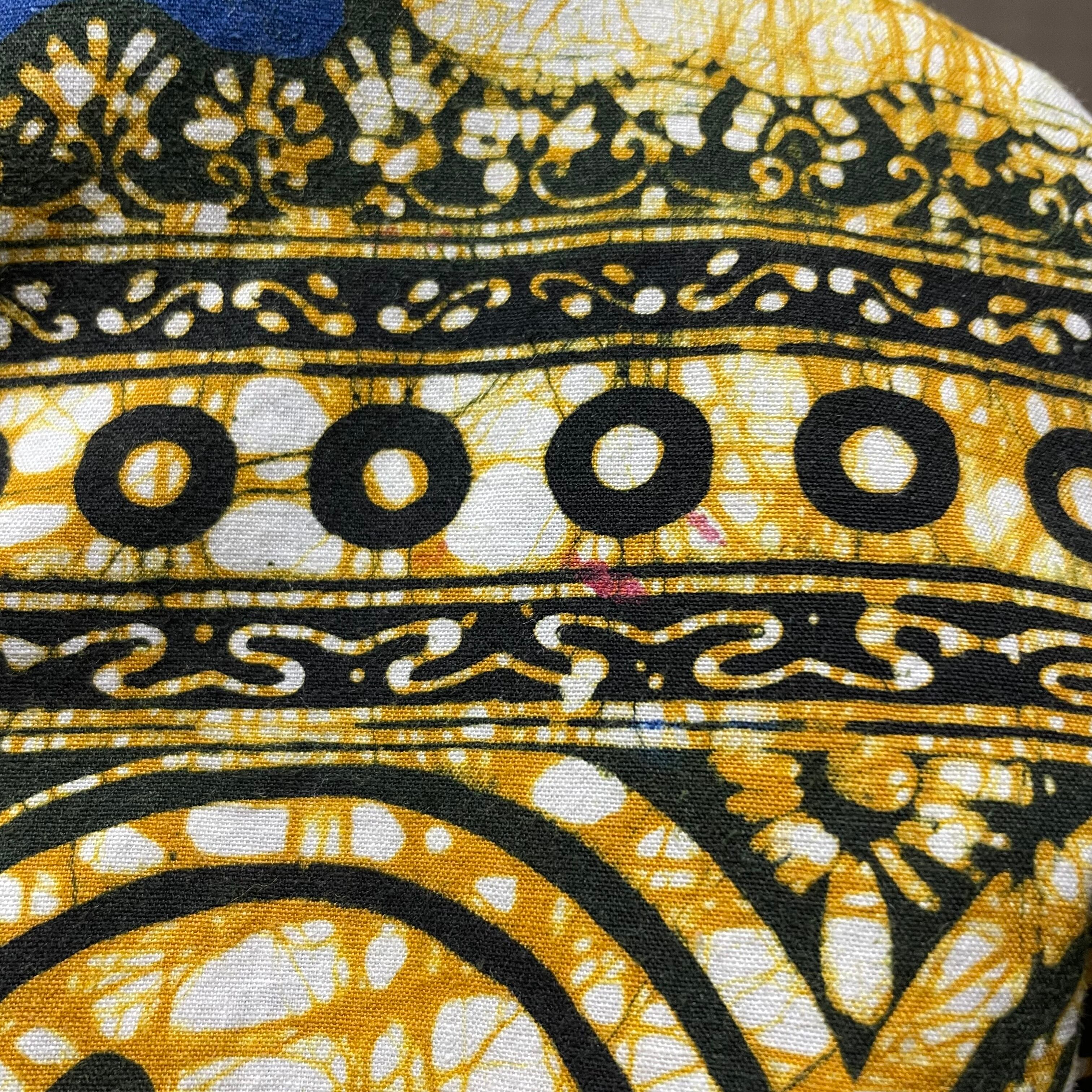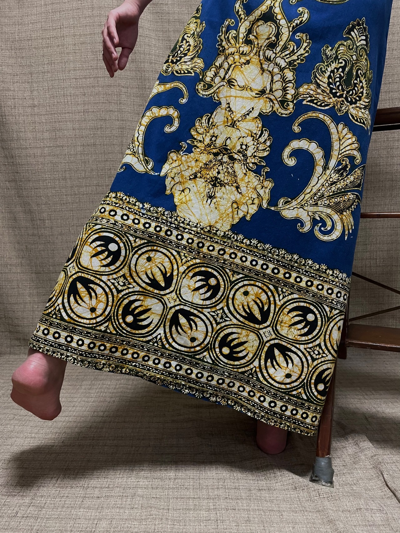 ブルーボディにパワフルなプリントがテンション上がる70sビンテージバティックドレス。