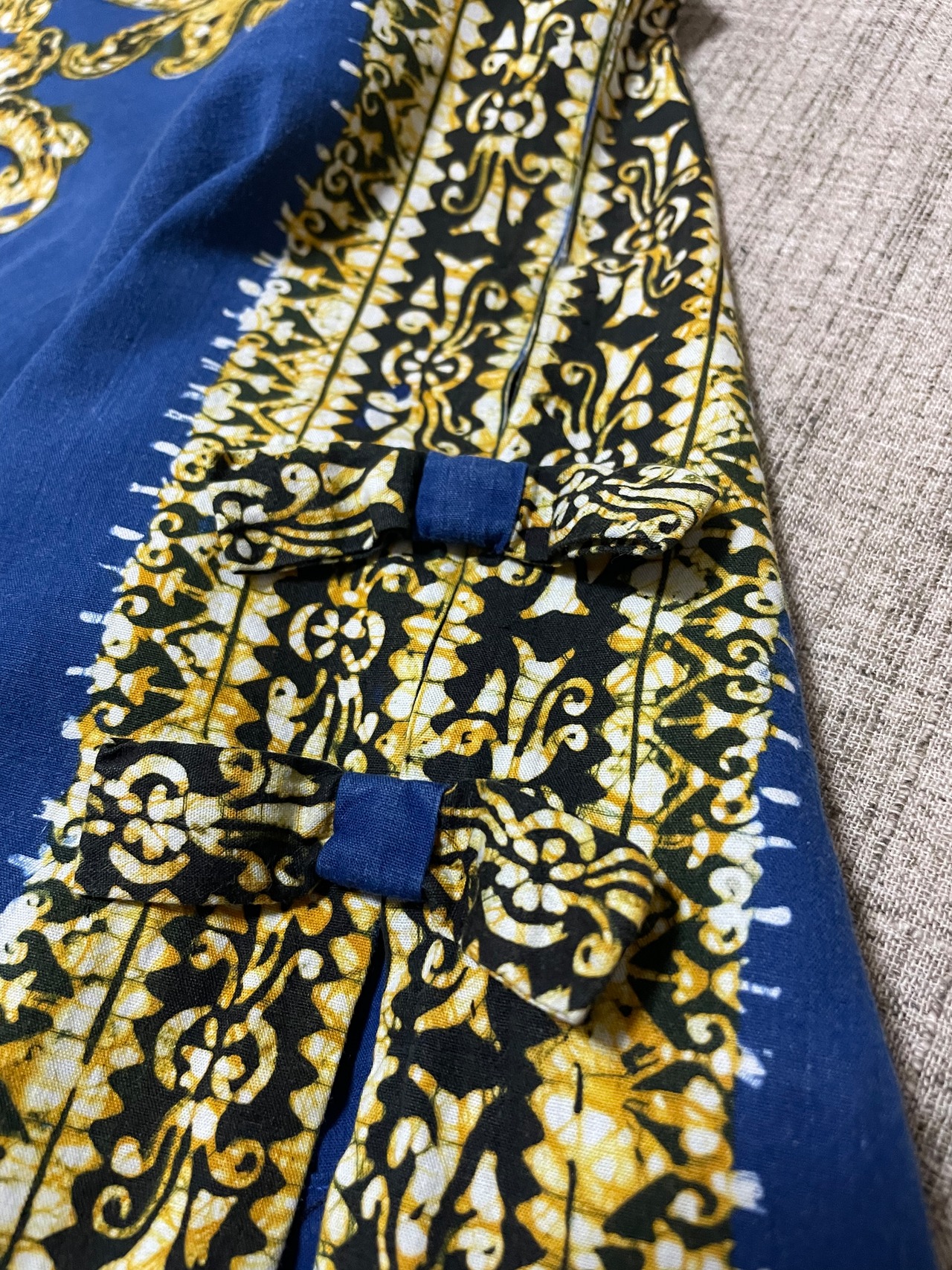 なんと言ってもアクセントになった袖リボンがバティックのパワフルさとギャップがありイけてます!!!◎◎◎