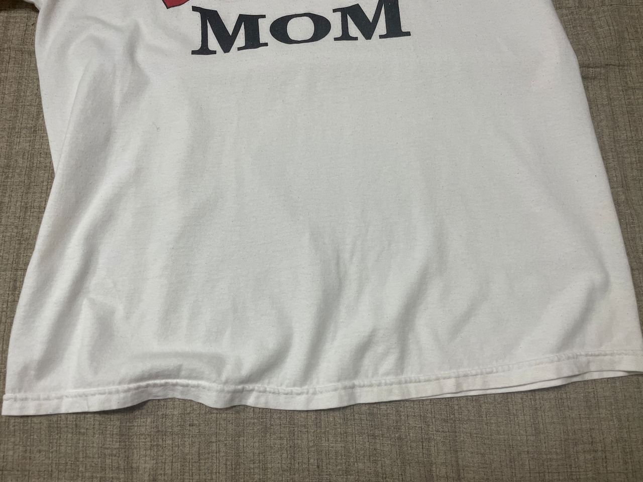ホワイトボディに " #1 MOM " のインパクトあるプリントが愛情たっぷりなビンテージTシャツ。