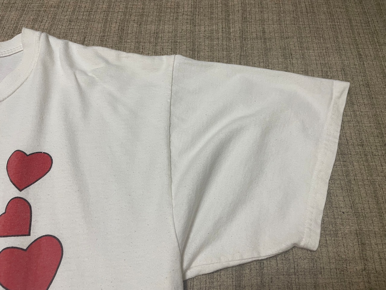 ネック付近にリペア跡とシミ、プリントキズ。