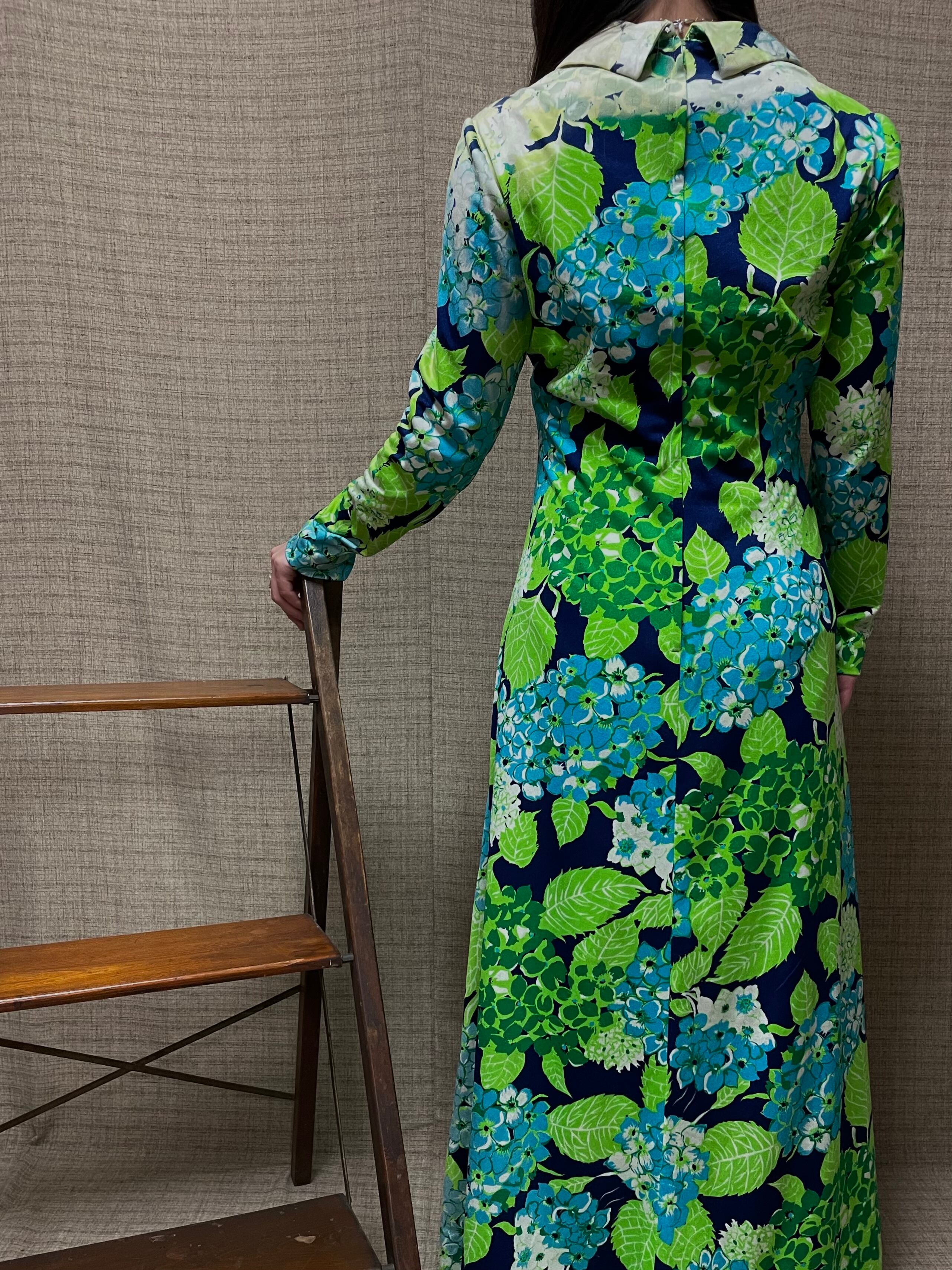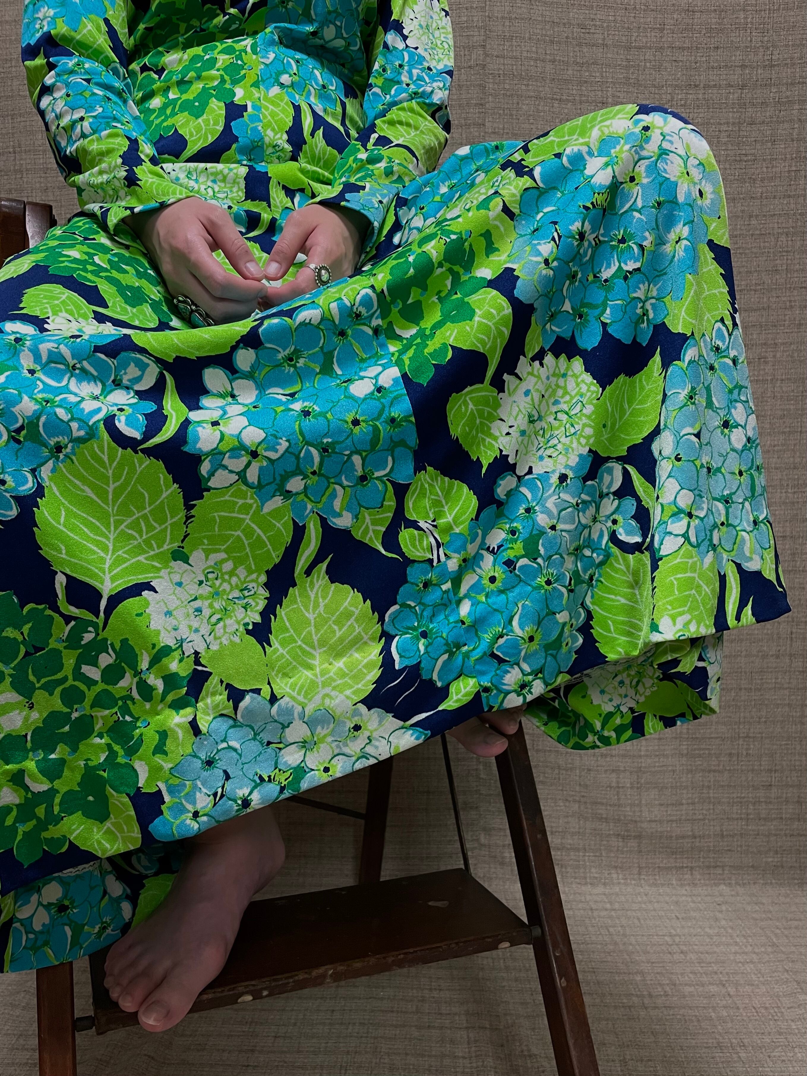 アジサイ柄がステキな70sビンテージパターンドレス。