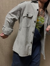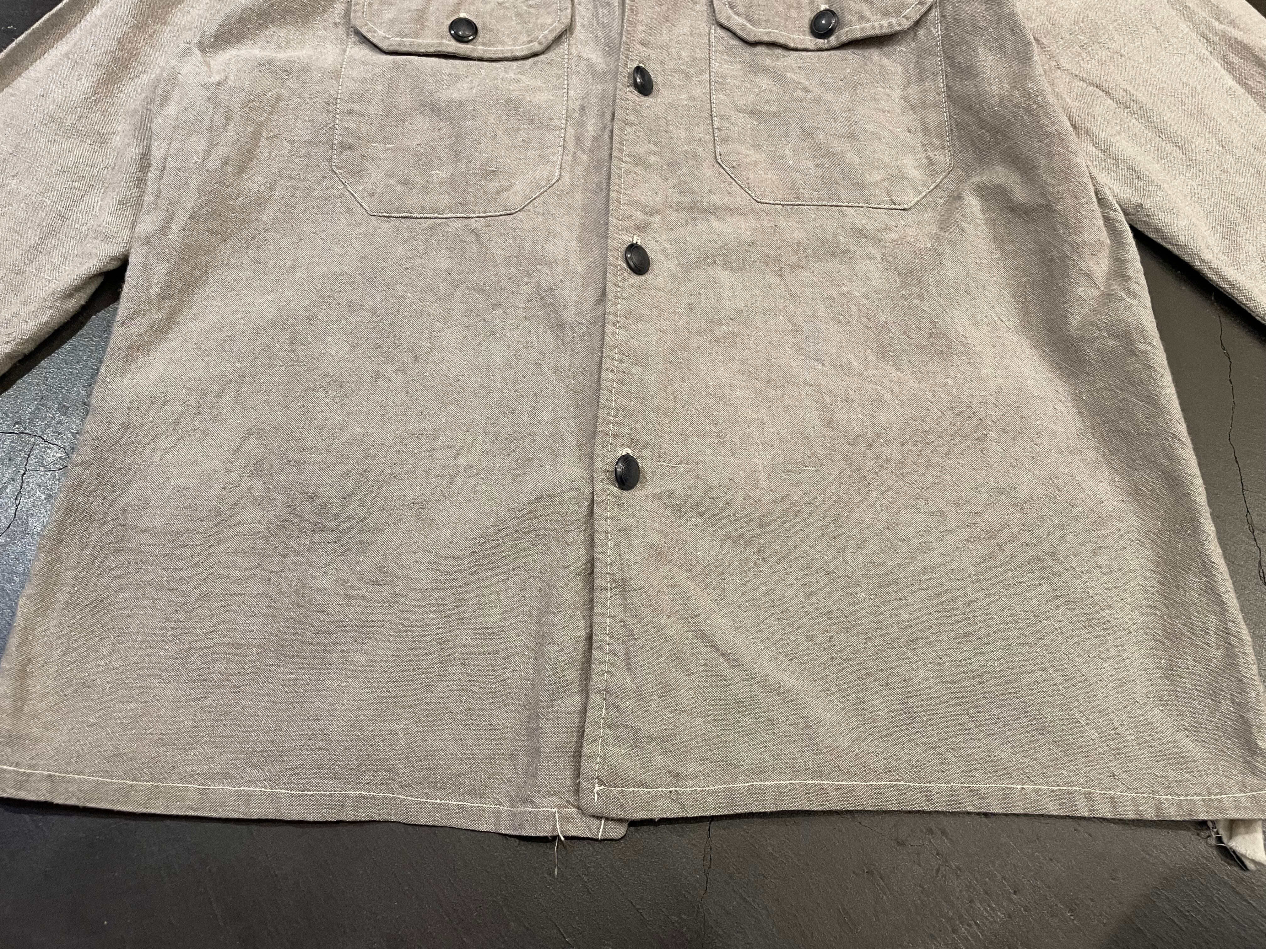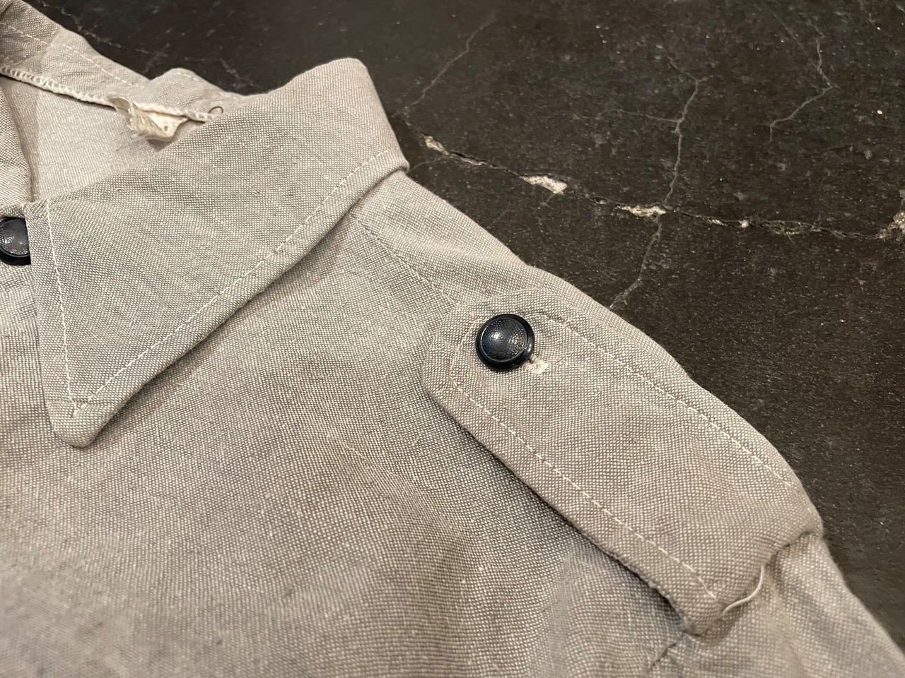 絶妙なグレーカラーにしっかりとした生地感で風合いが良いビンテージミリタリーシャツ。