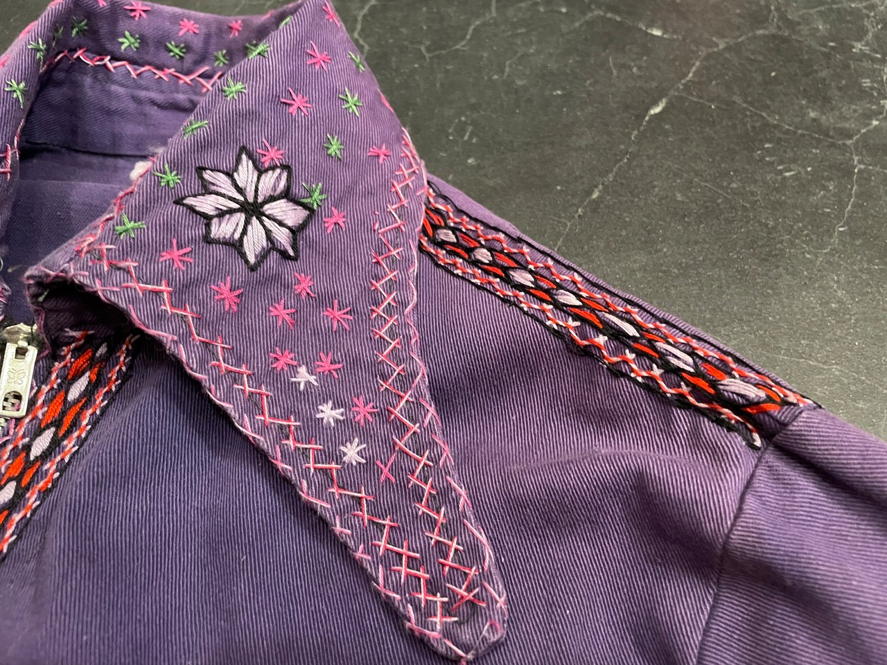 メキシカンテイストなトリやお花のモチーフが施され、ジップ付近や襟元、袖口までぎっしりと手の込んだ刺繍が素晴らしいビンテージならではなアイテム◎