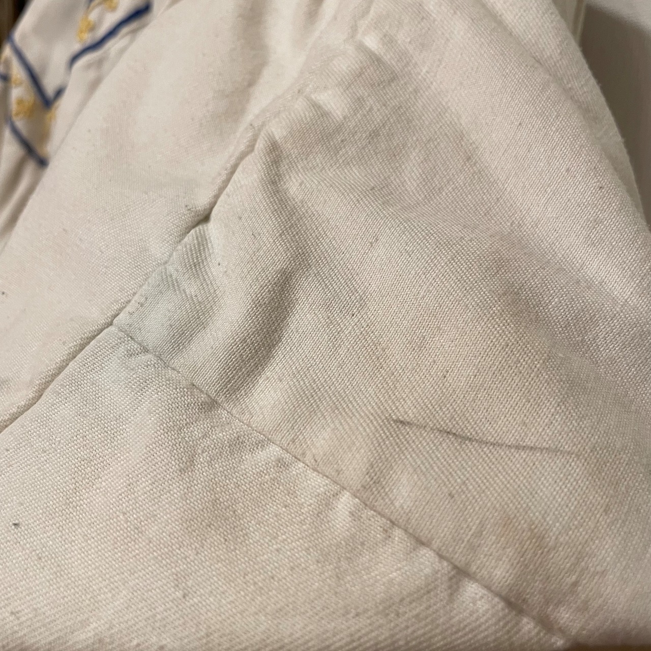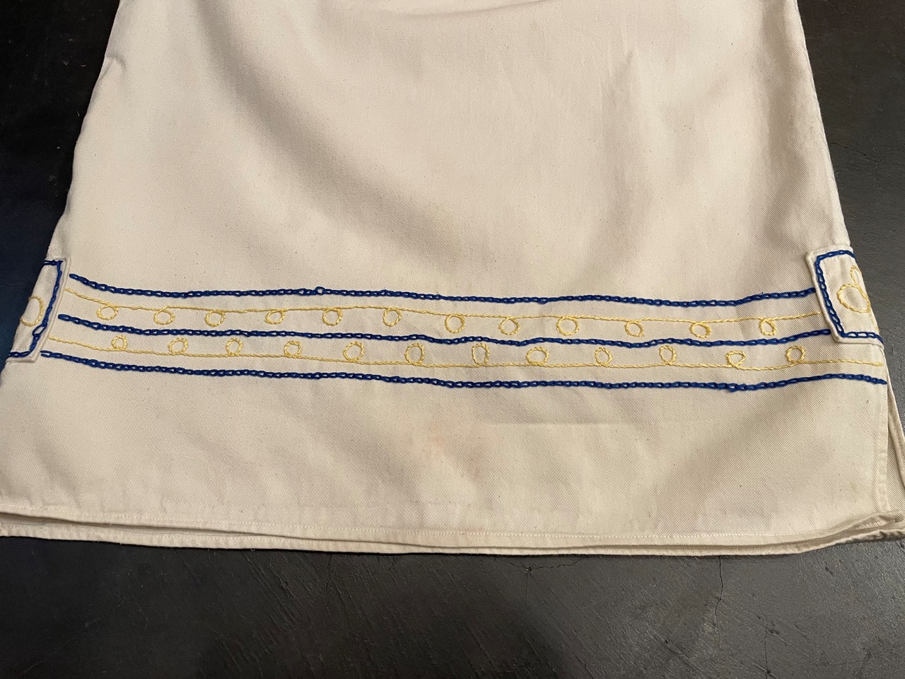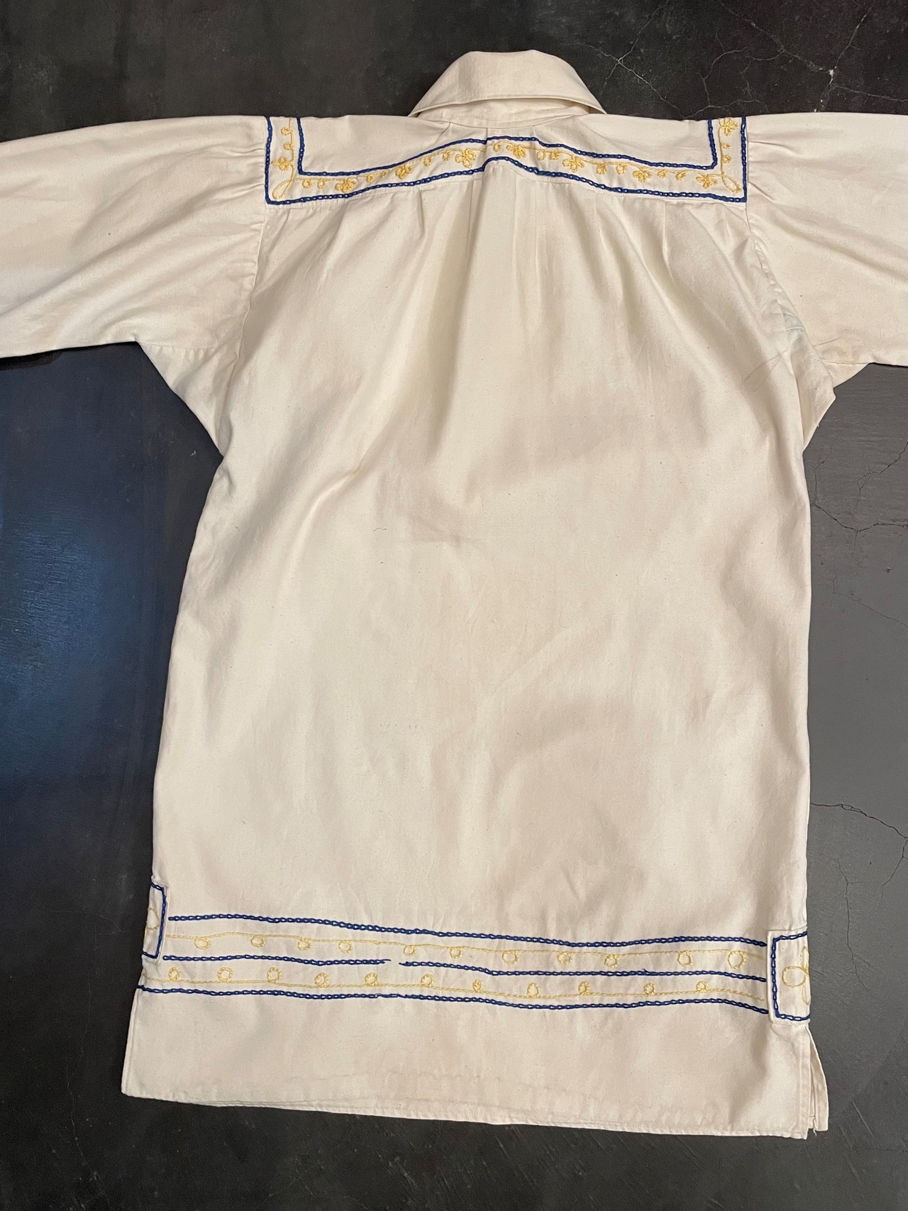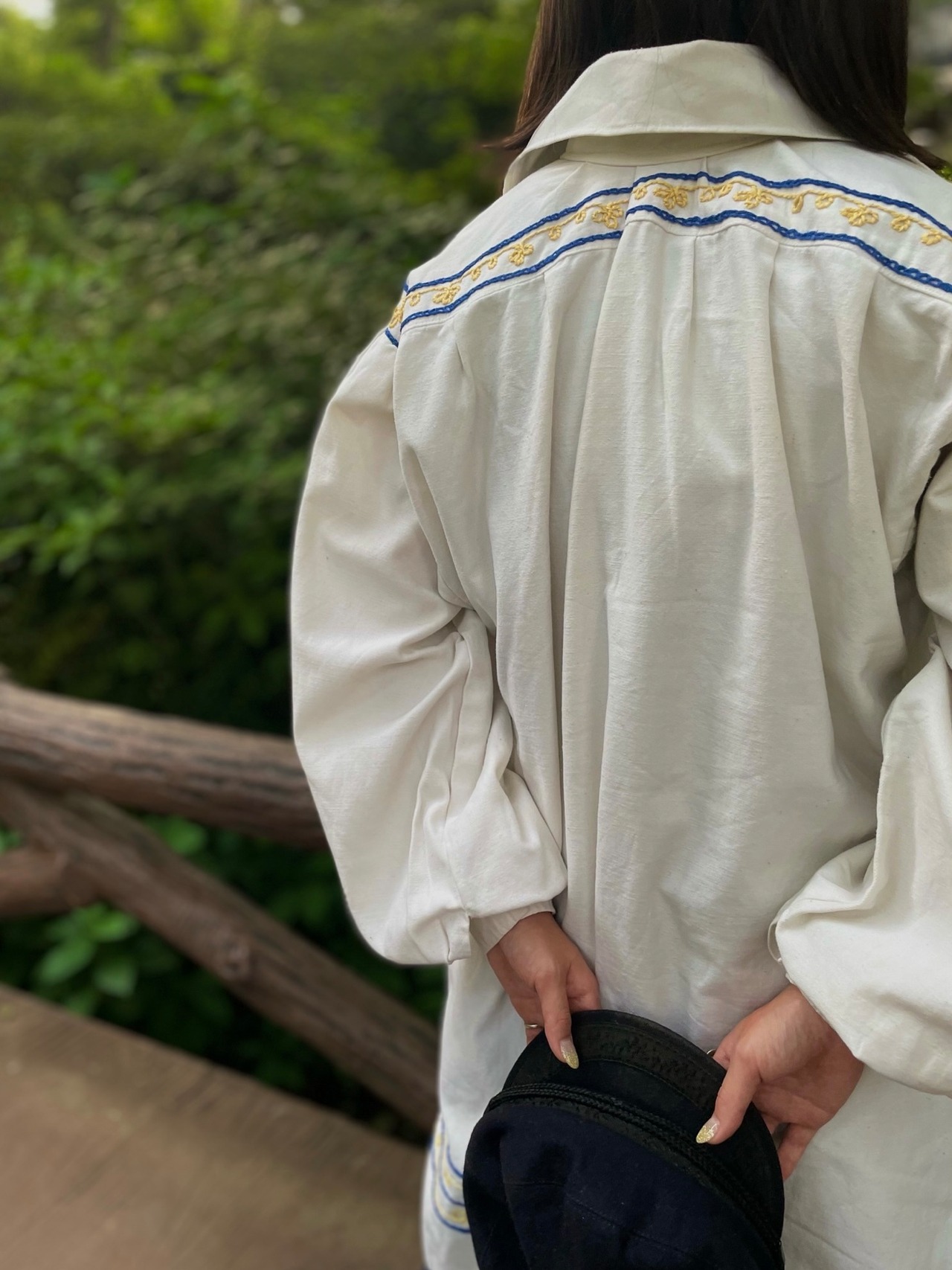 しっかりとした生地感のオフホワイトボディに雰囲気抜群な刺繍が施されたビンテージチャーチスモック。