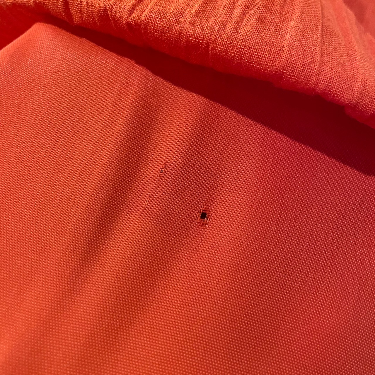 右肩に薄い汚れ、裏地に小穴とシミがございます。