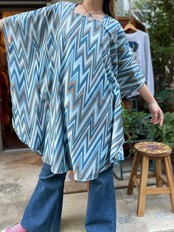 広げるとポンチョのようなシルエットですが、サイドは縫われており袖を通せます◎◎◎