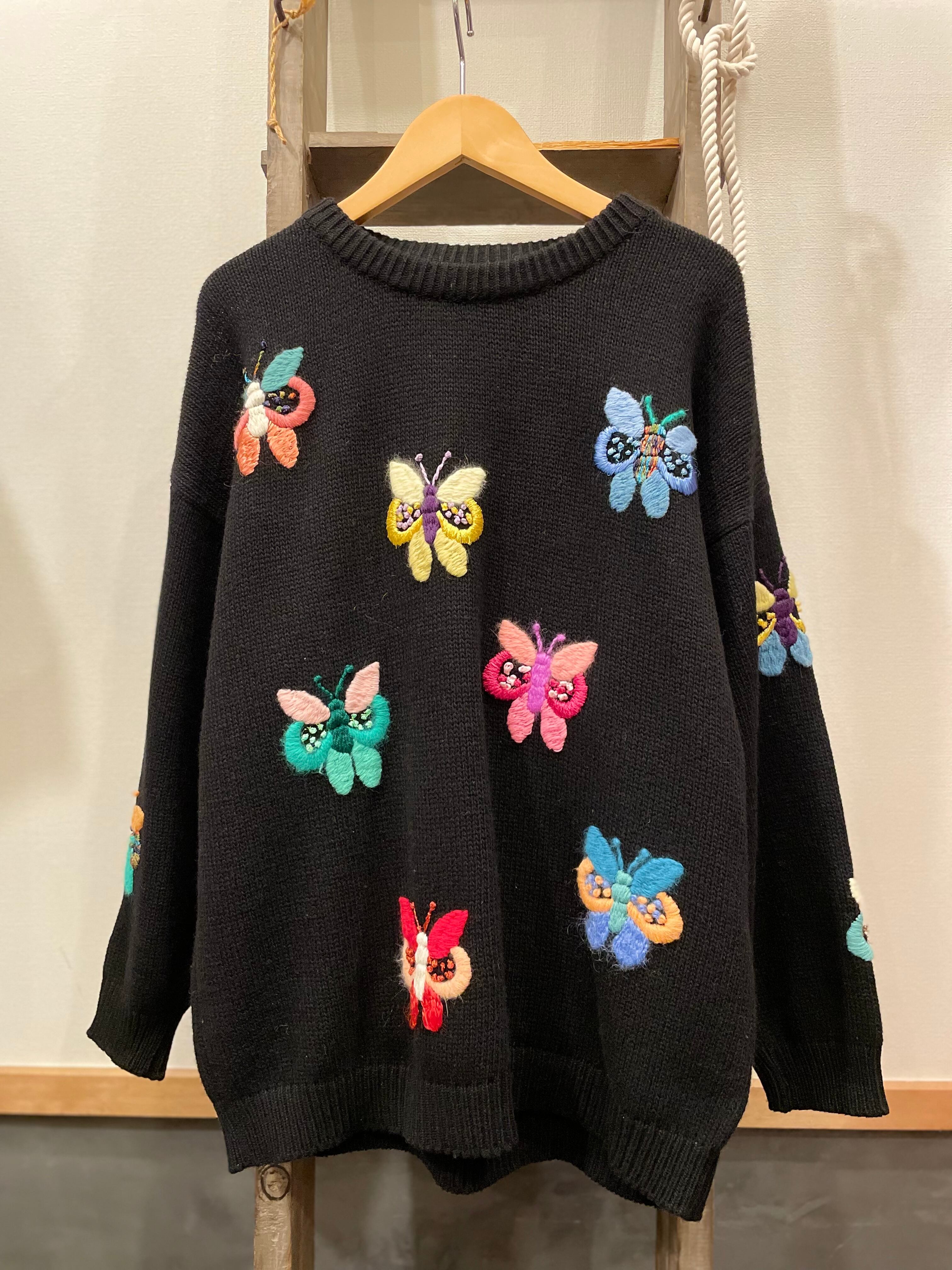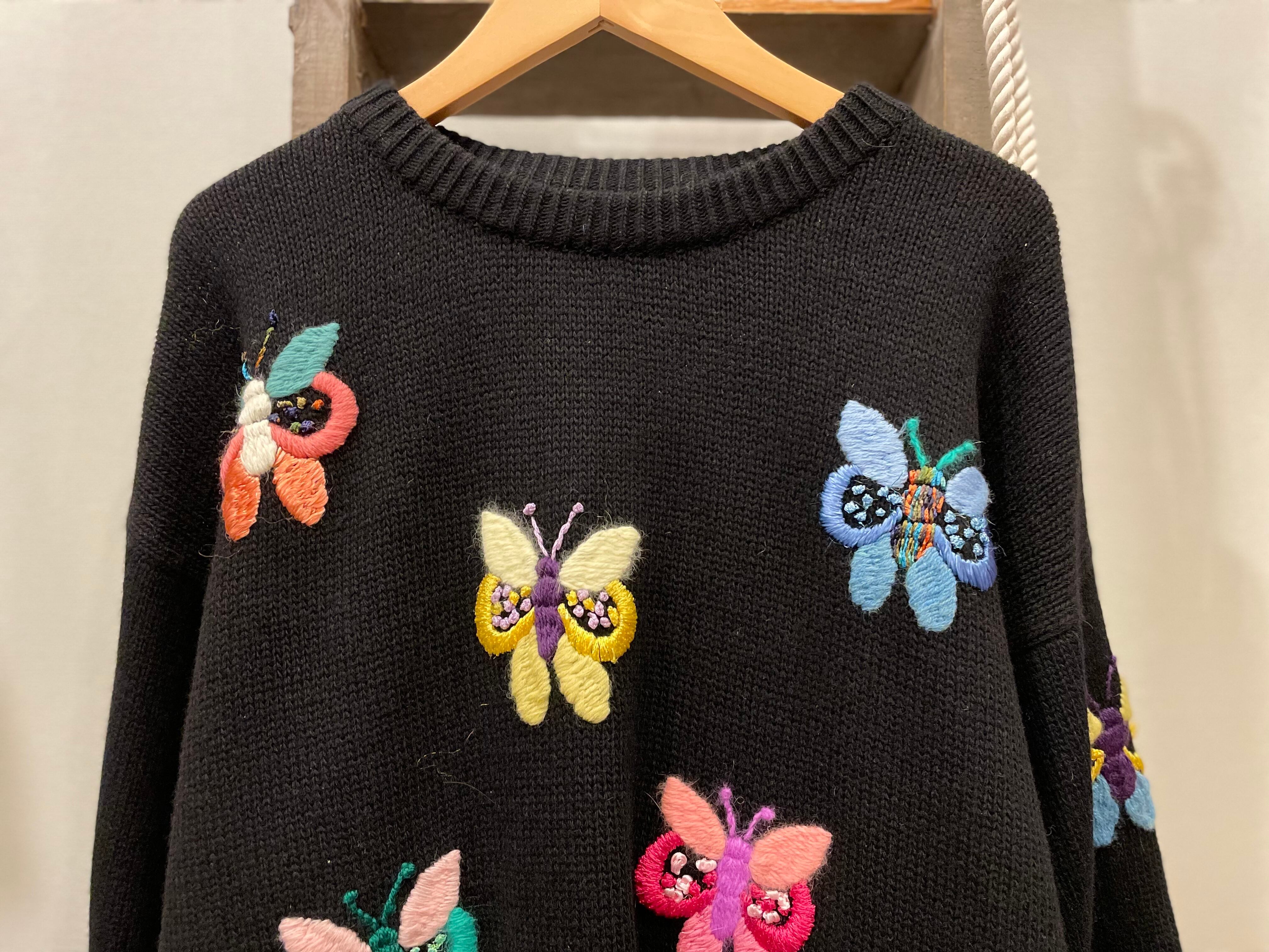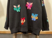 ブラックボディにカラフルなバタフライデザインが素敵なビンテージニット。