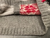 こちらはモチーフはそれぞれ配色が変わりデザイン性も素晴らしく、襟元や袖先がロールされているのもナイスアクセント。