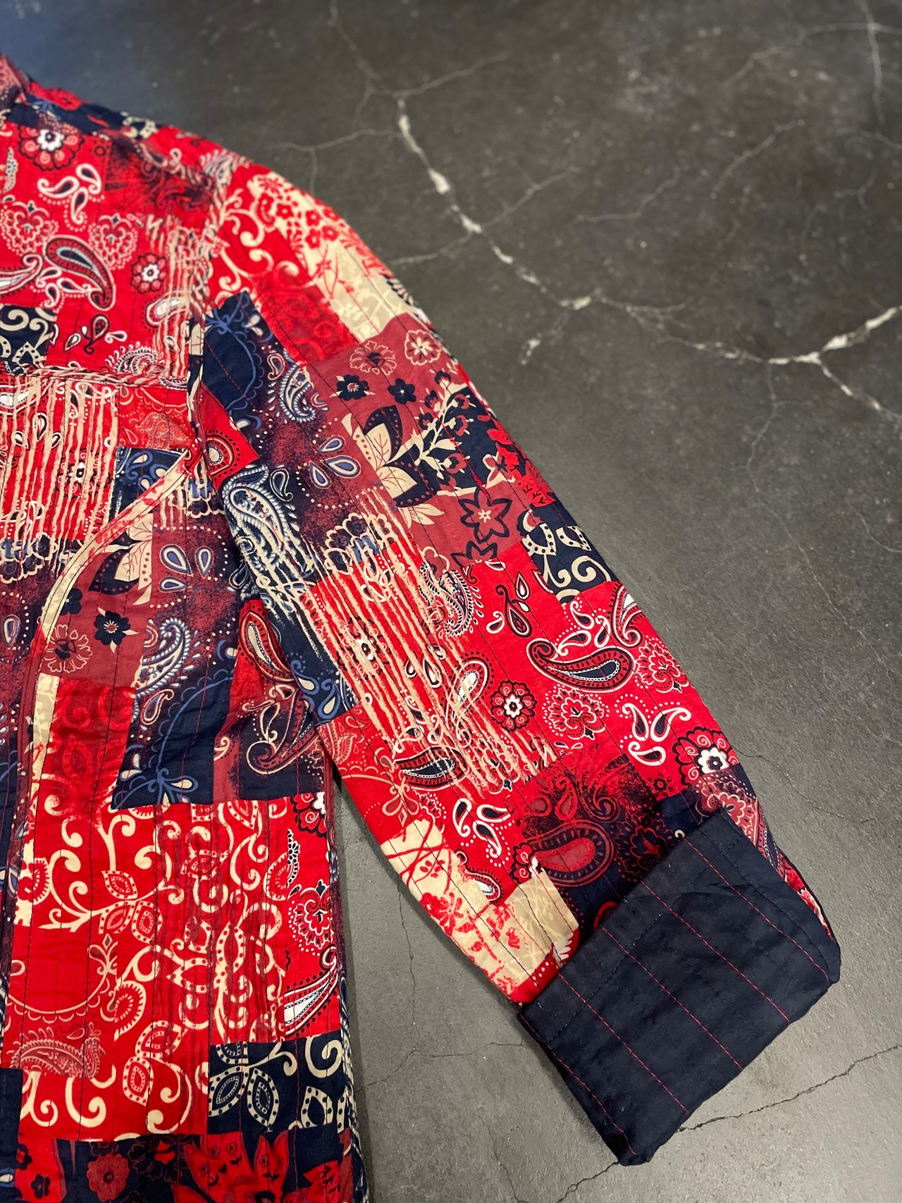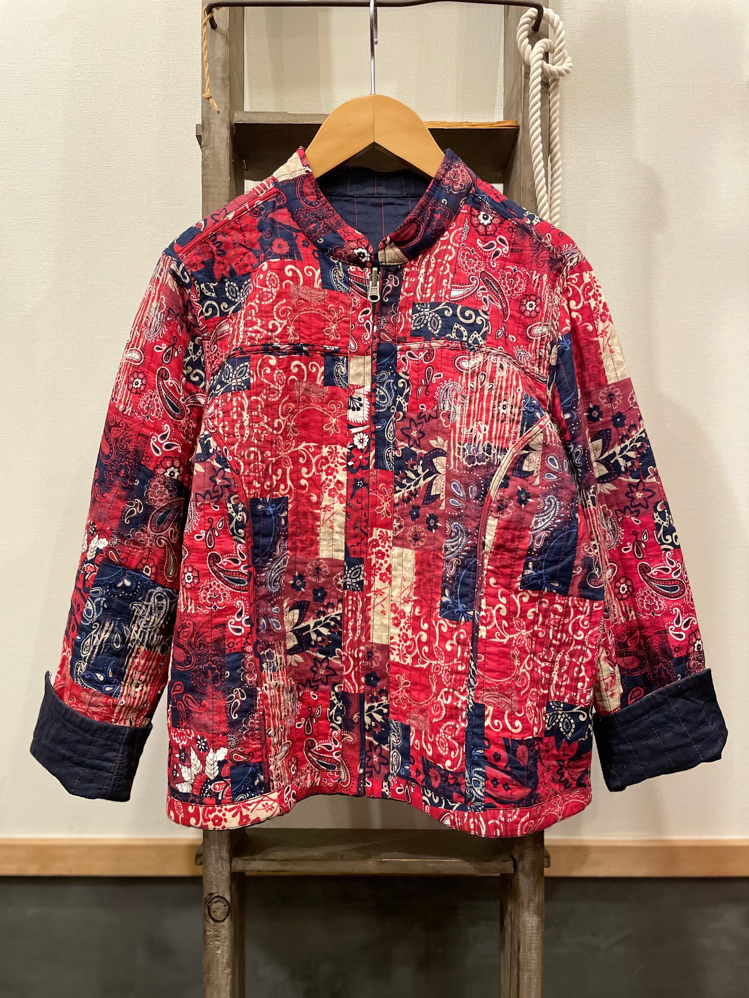 レッド×ネイビーのバンダナ柄のようなデザインが目を惹くビンテージジャケット。