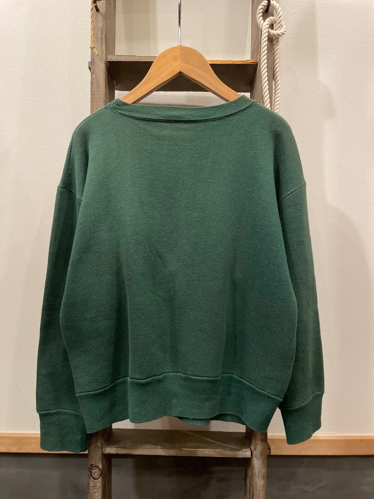 グリーンボディにフェードがかった生地の風合いが堪らない60sビンテージスウェット。