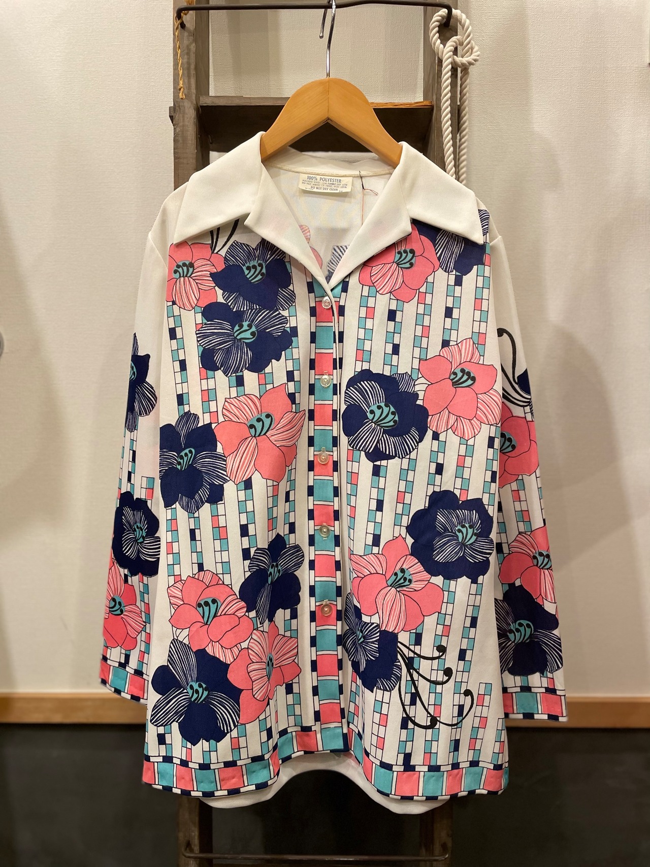 華やかなフラワープリントがステキな70sビンテージシャツ。