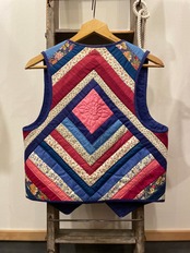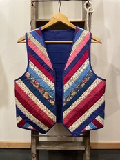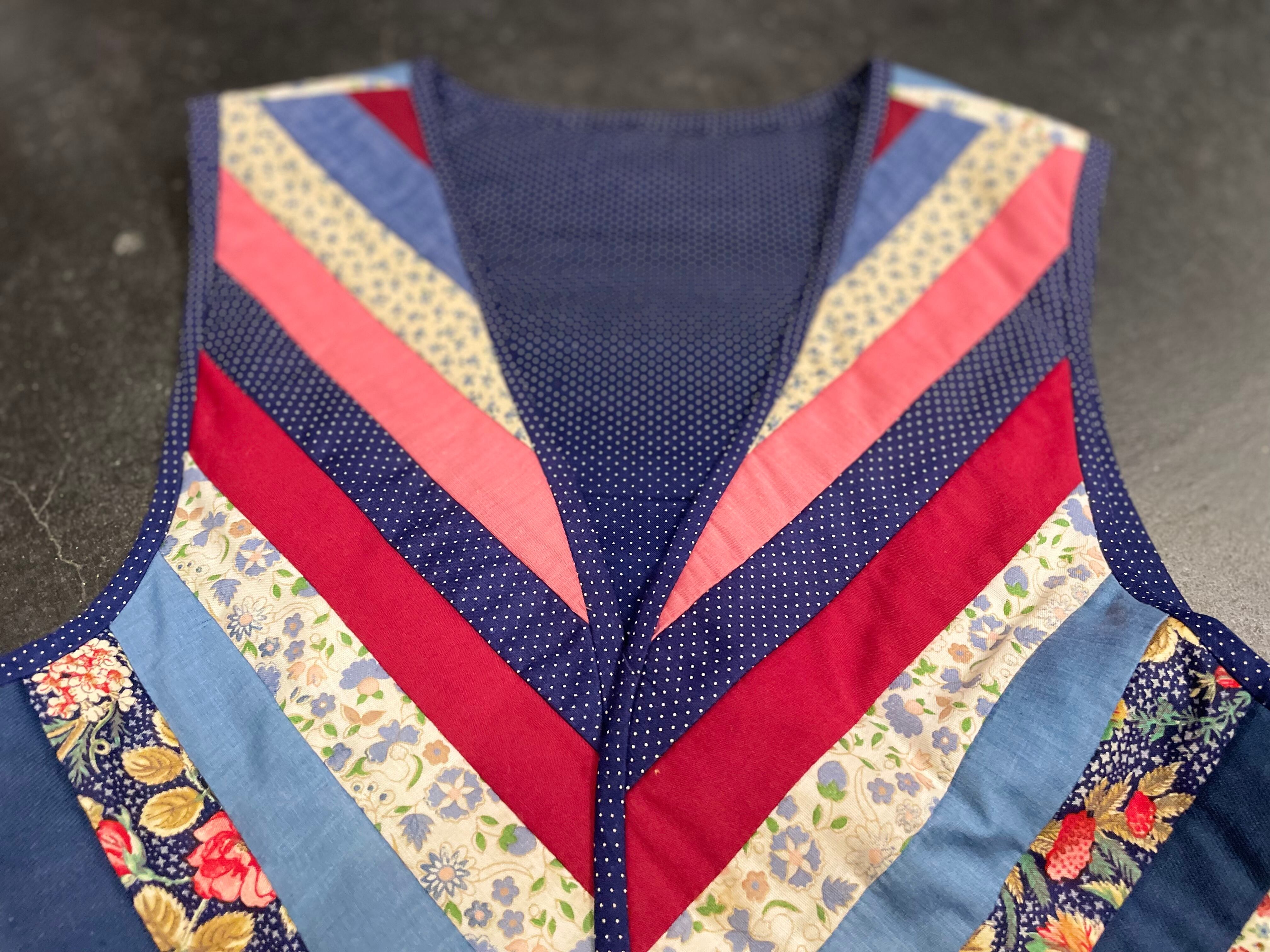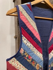 様々な柄を使用し、手の込んだパッチワークデザインが素敵な70sビンテージキルティングベスト。