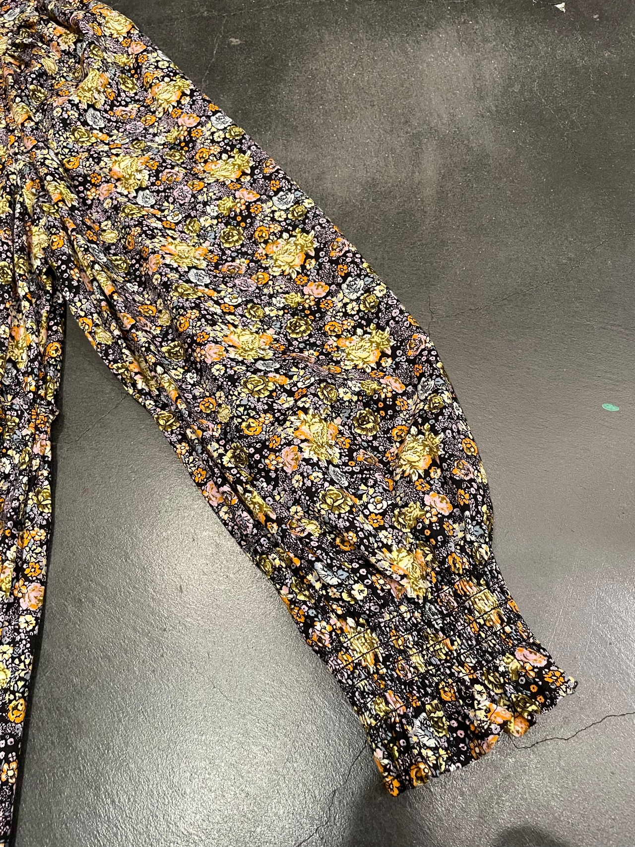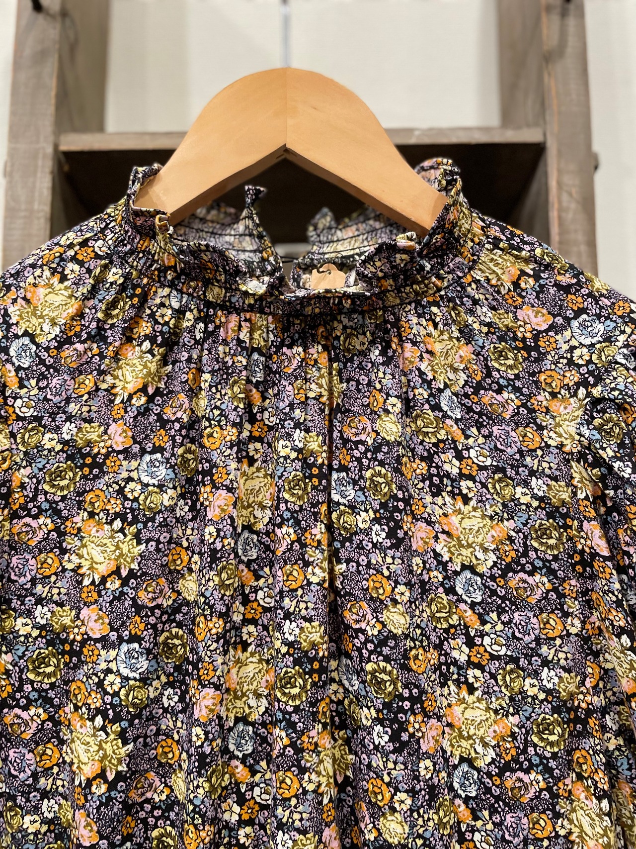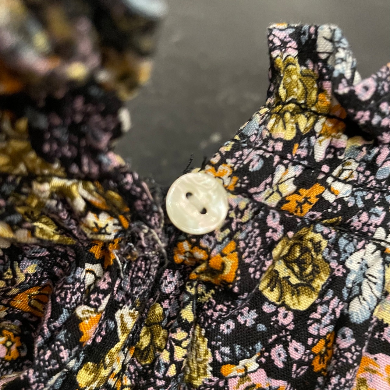 首周り、袖口にはシャーリングが施され、ウエストにはゴムが入り、切り替え部分にはフリルが施されてます◎◎◎