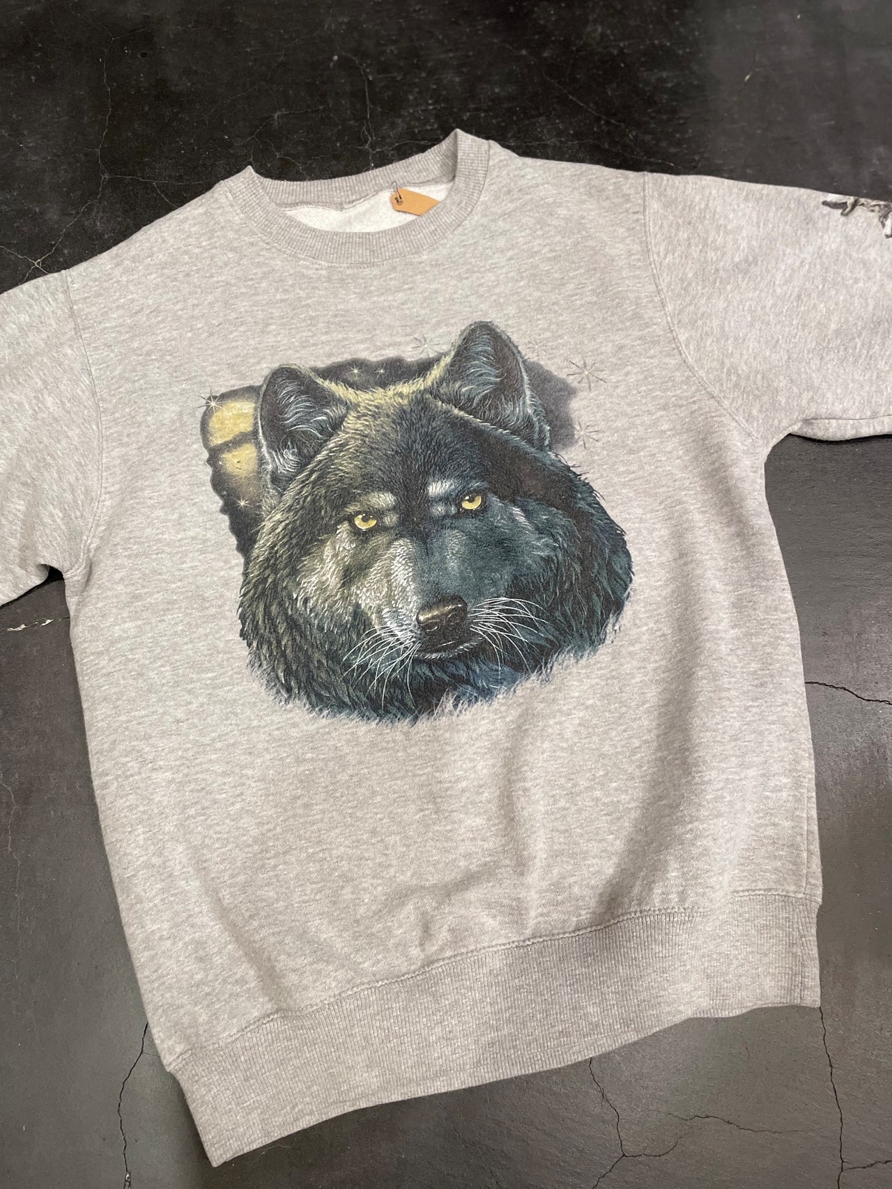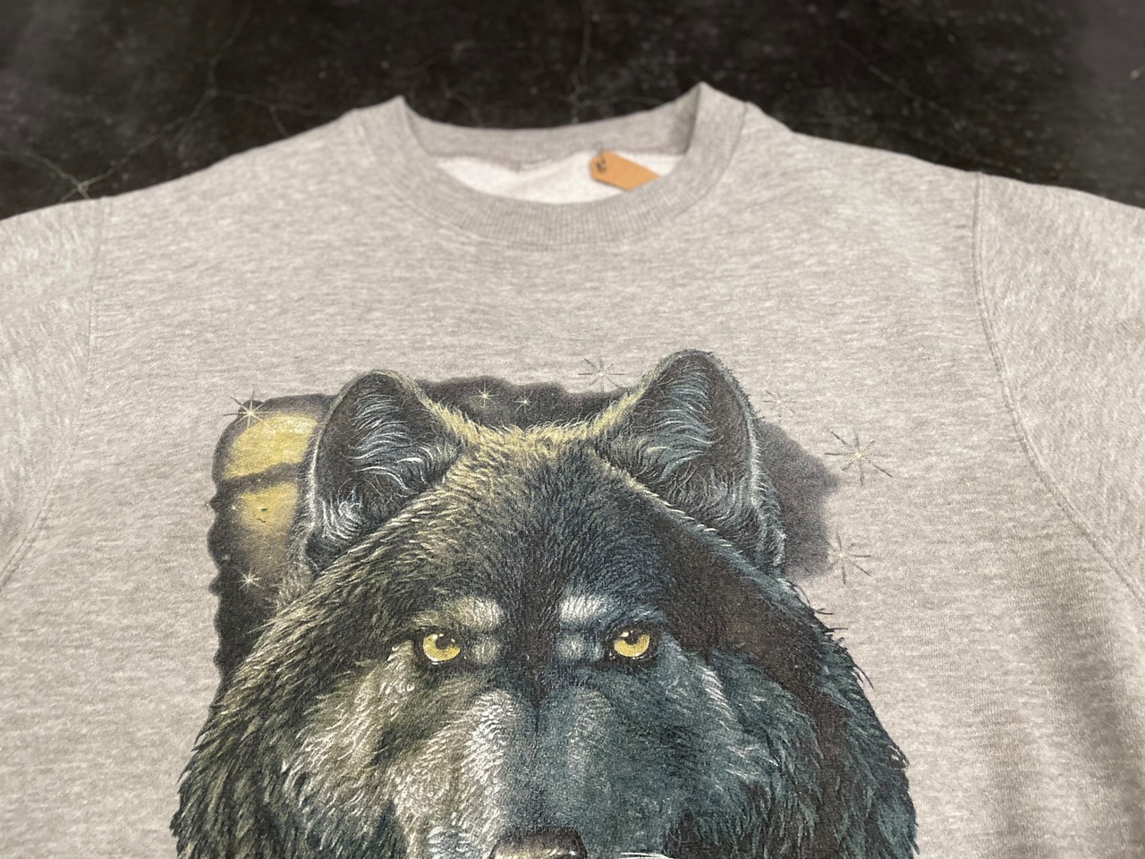 グレーボディにオオカミのプリントが目を惹くビンテージスウェット。
