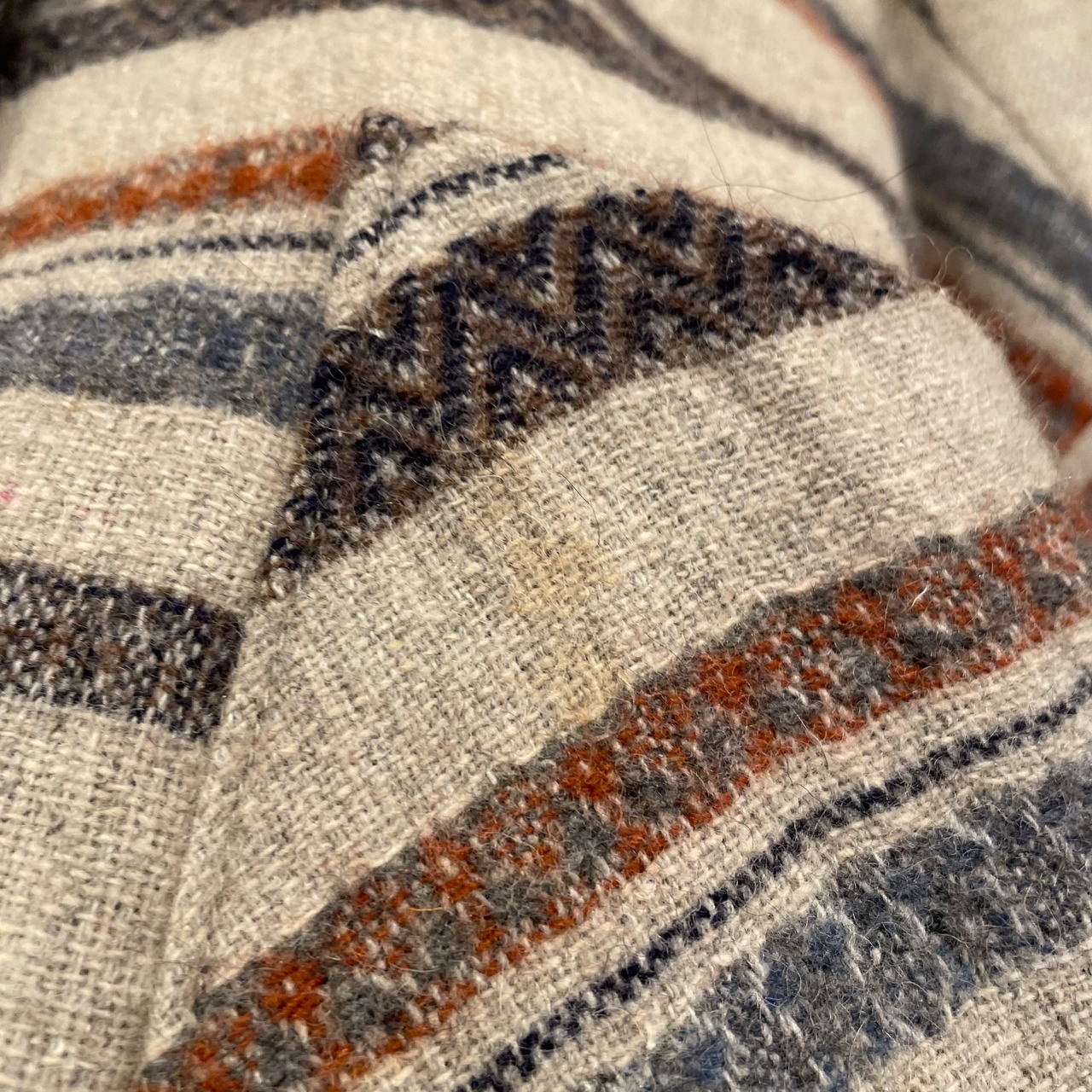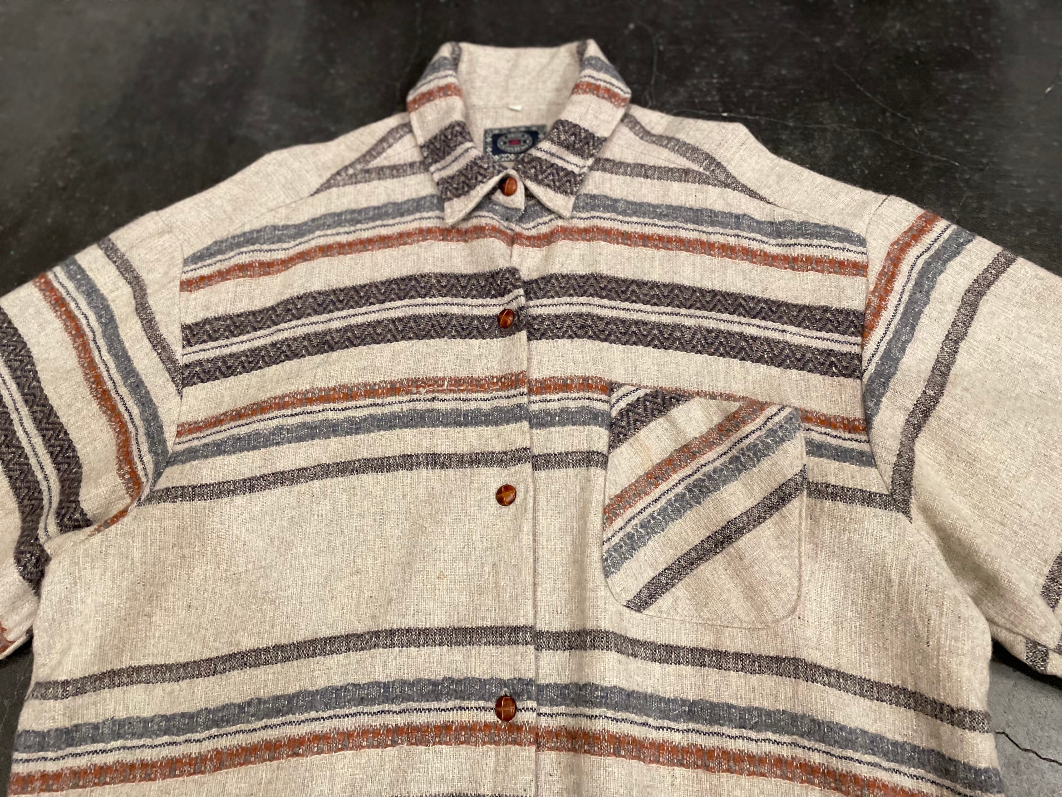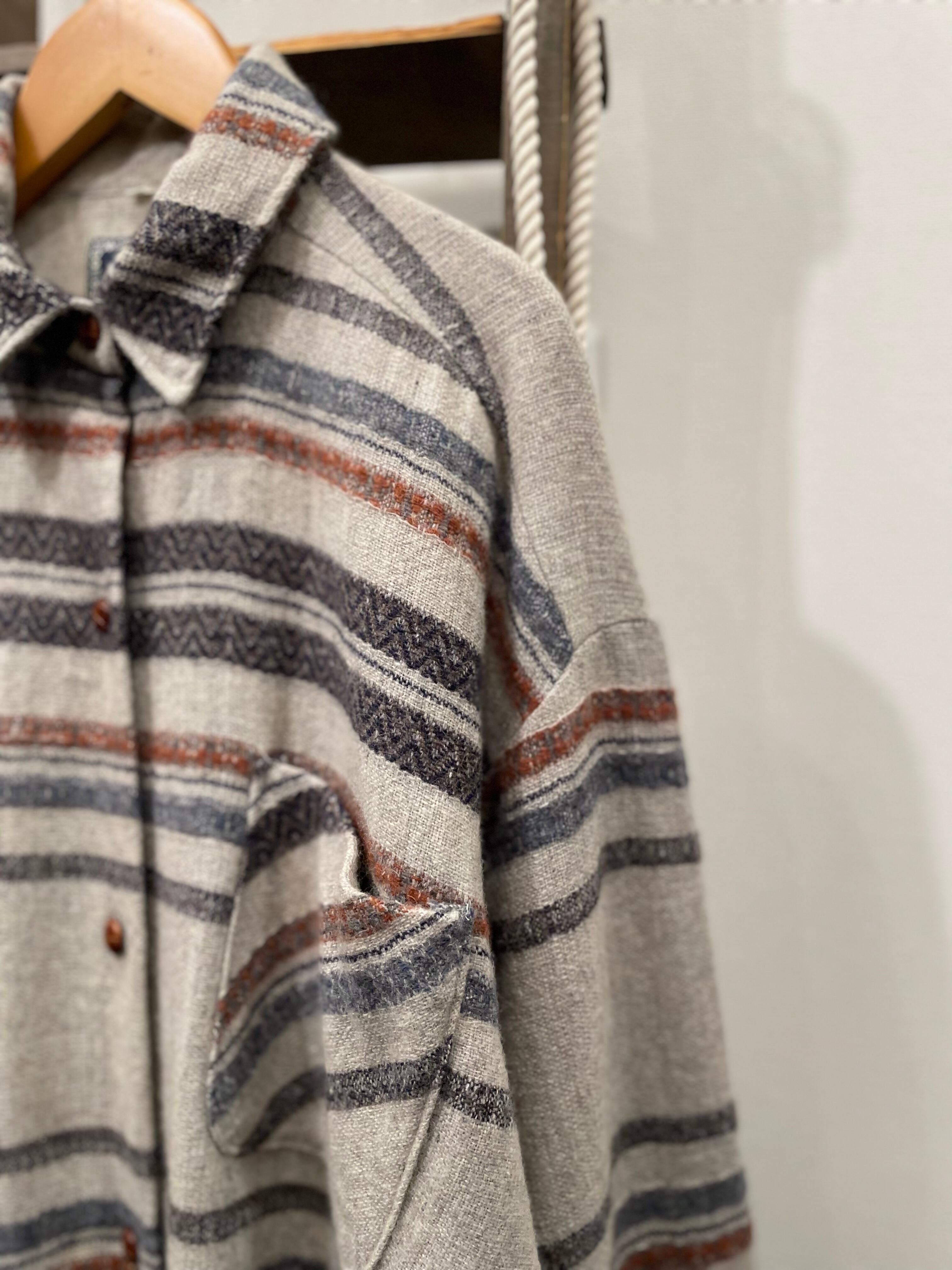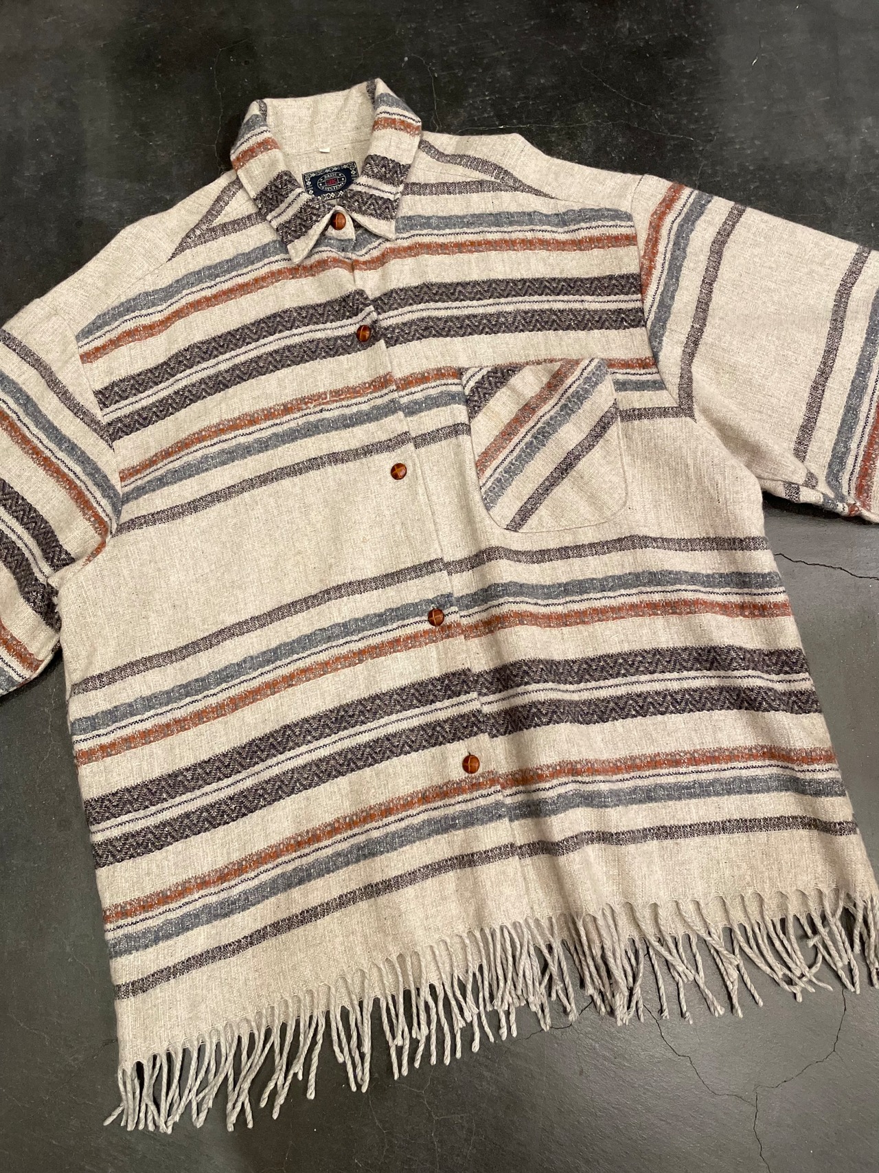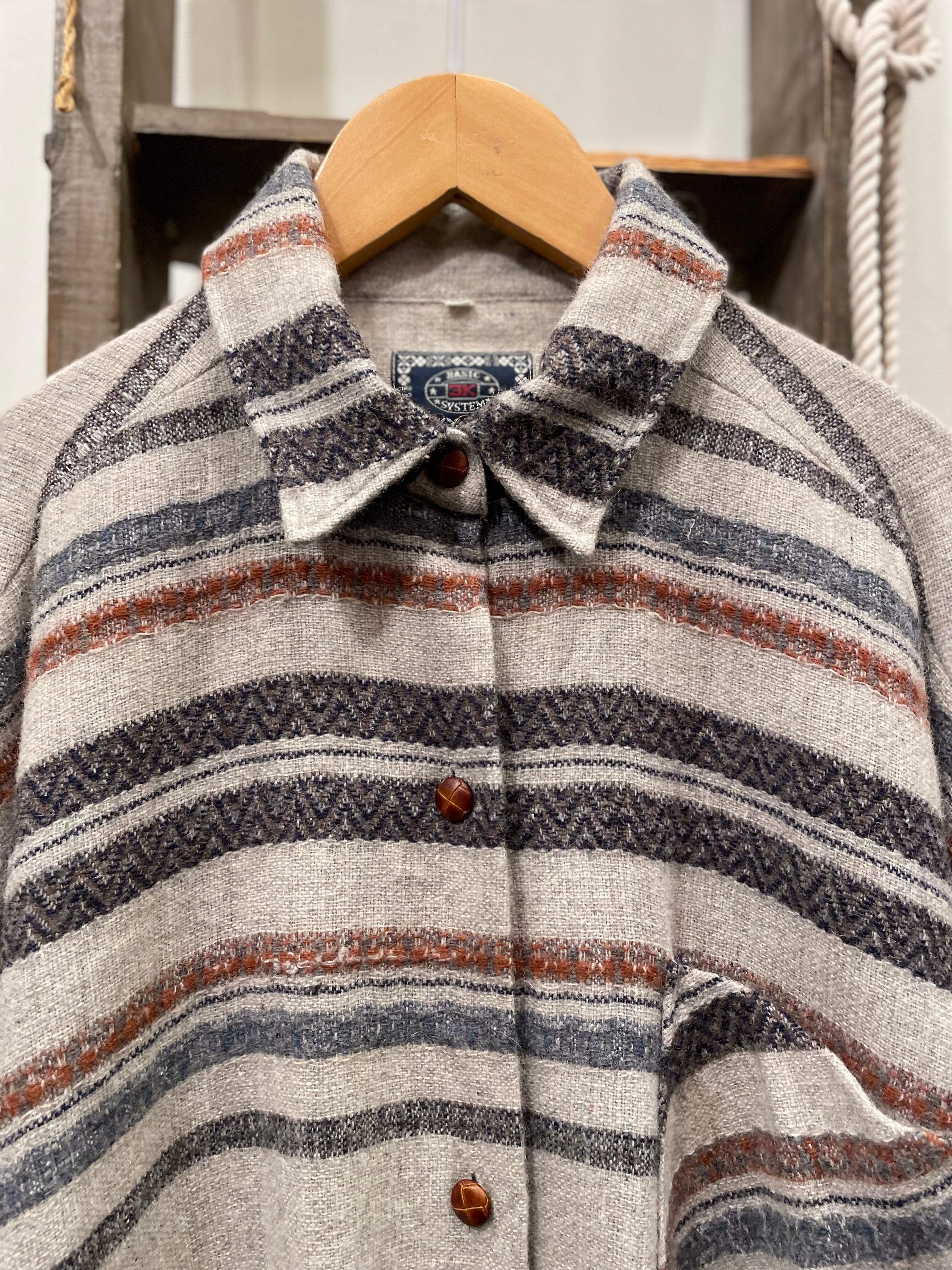 グレーボディにネイティブ調なボーダーデザインや裾のフリンジが素敵なビンテージシャツ。