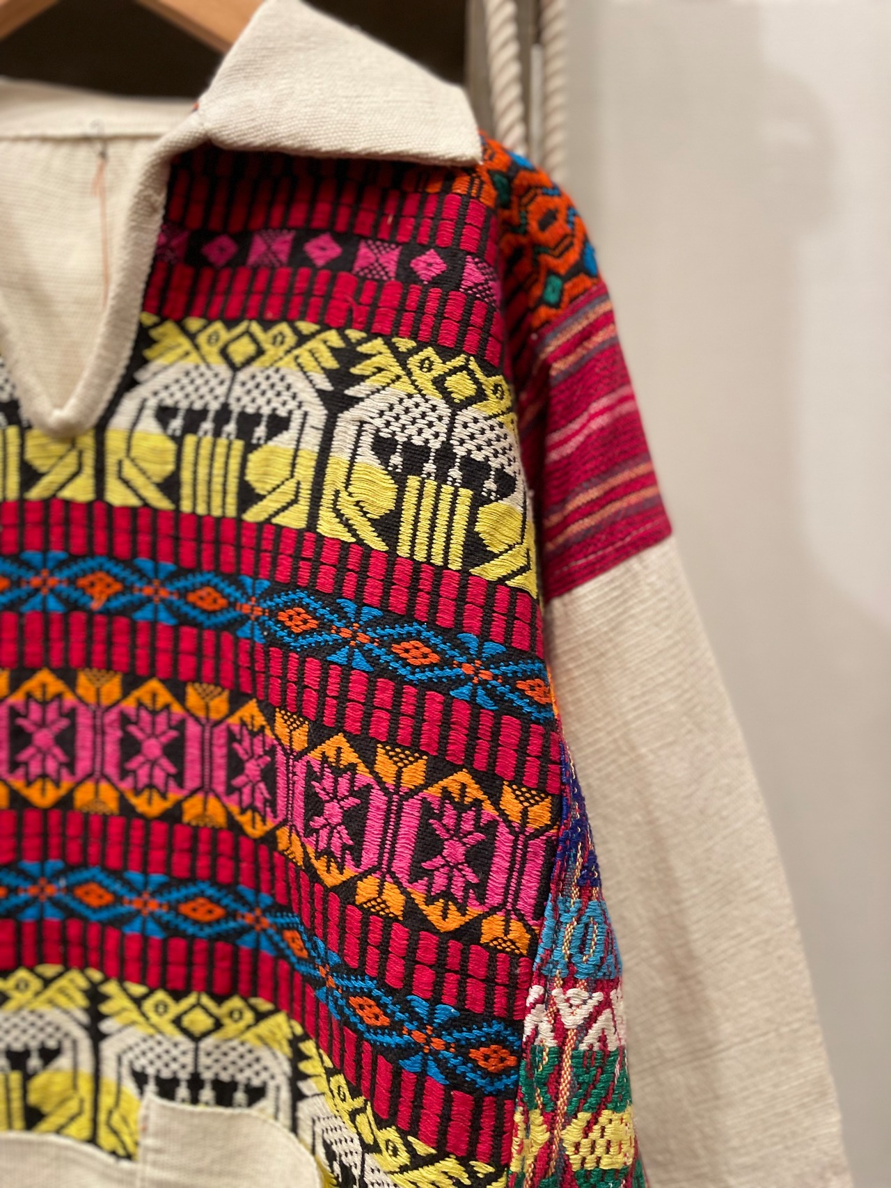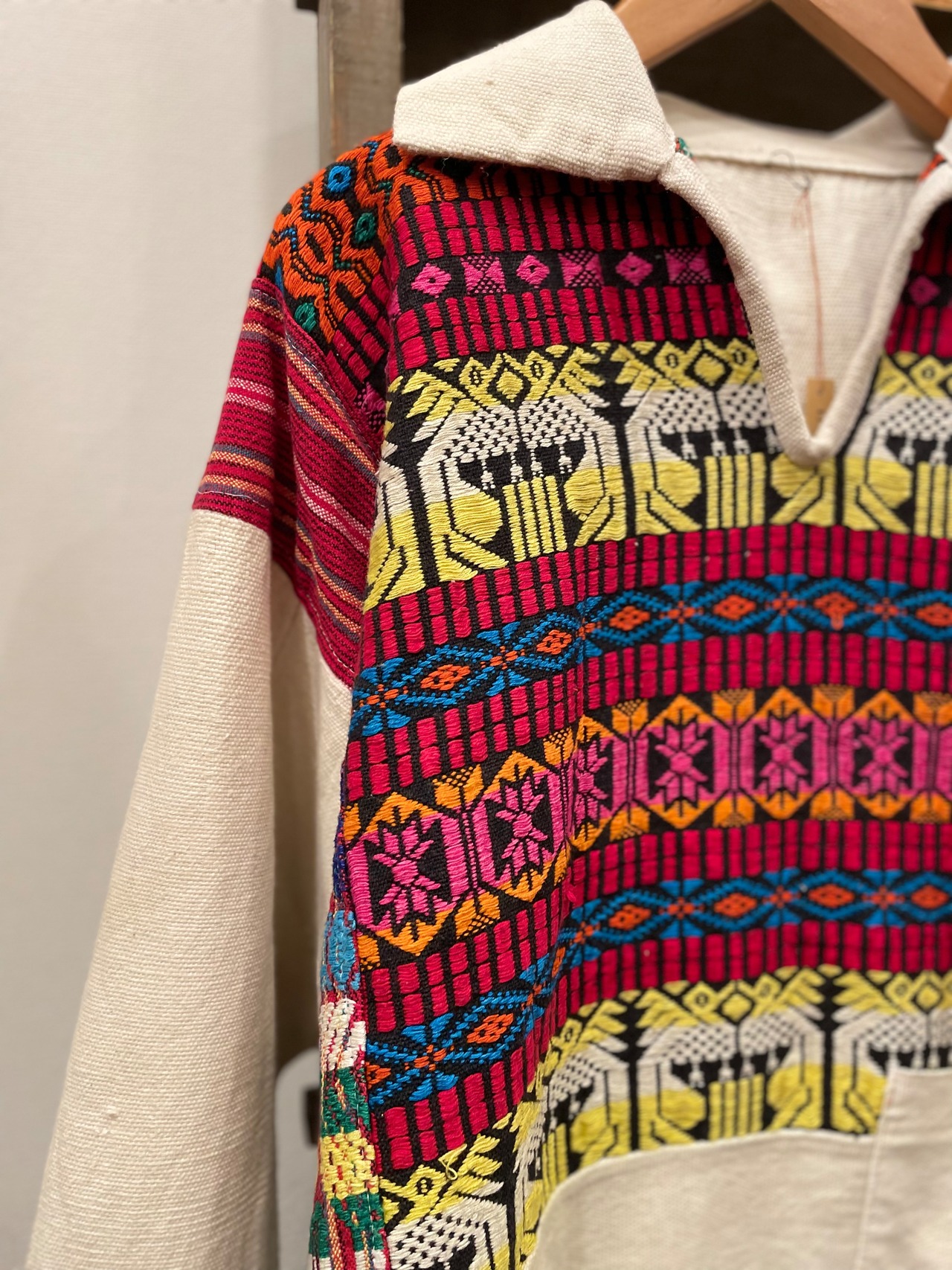 ホワイトボディに、色鮮やかなグアテマラ刺繍が施されたビンテージプルオーバー。