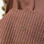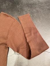 合わせやすいブラウンカラーの70sハーフジップトップス。