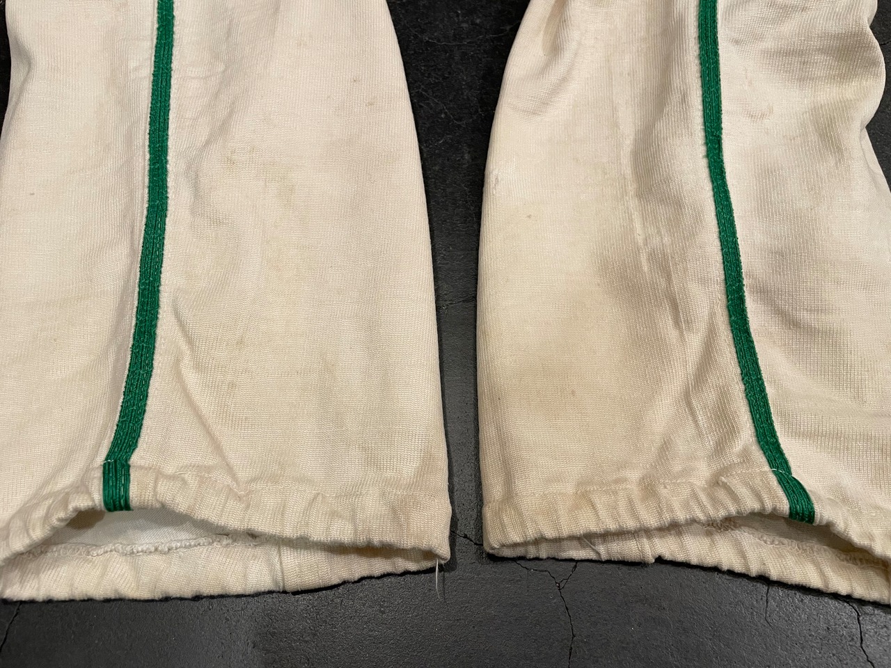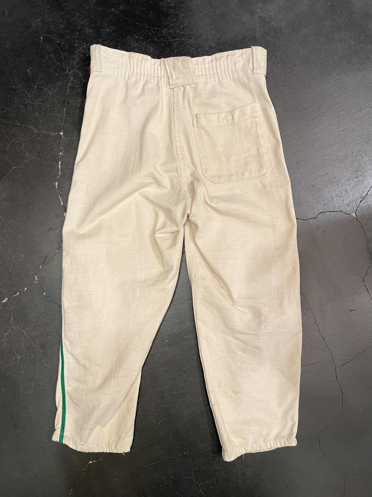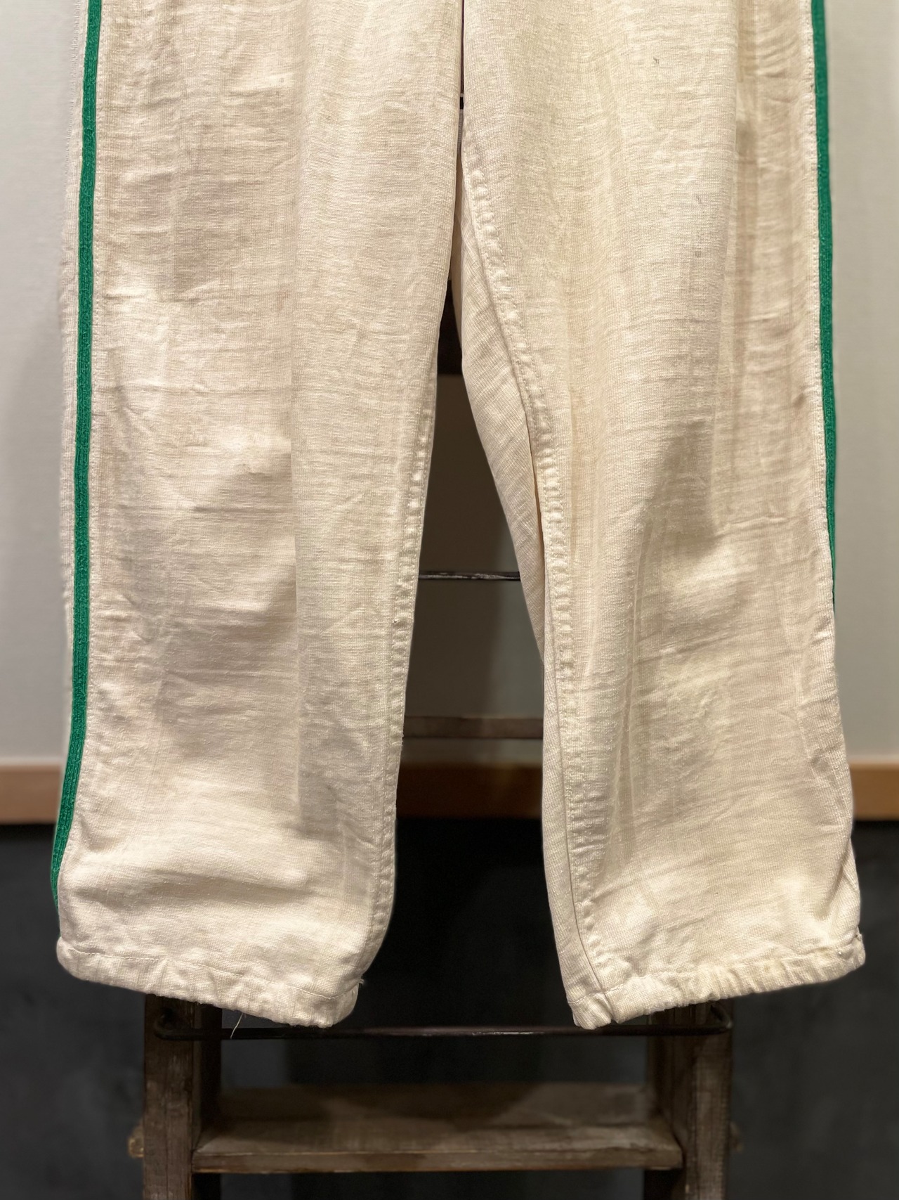合わせやすいホワイトカラーに緑ラインが映えてる50-60sビンテージベースボールパンツ。
