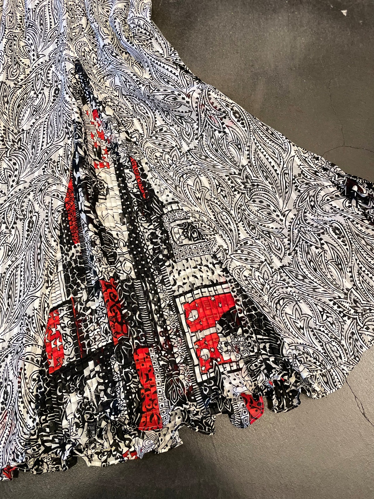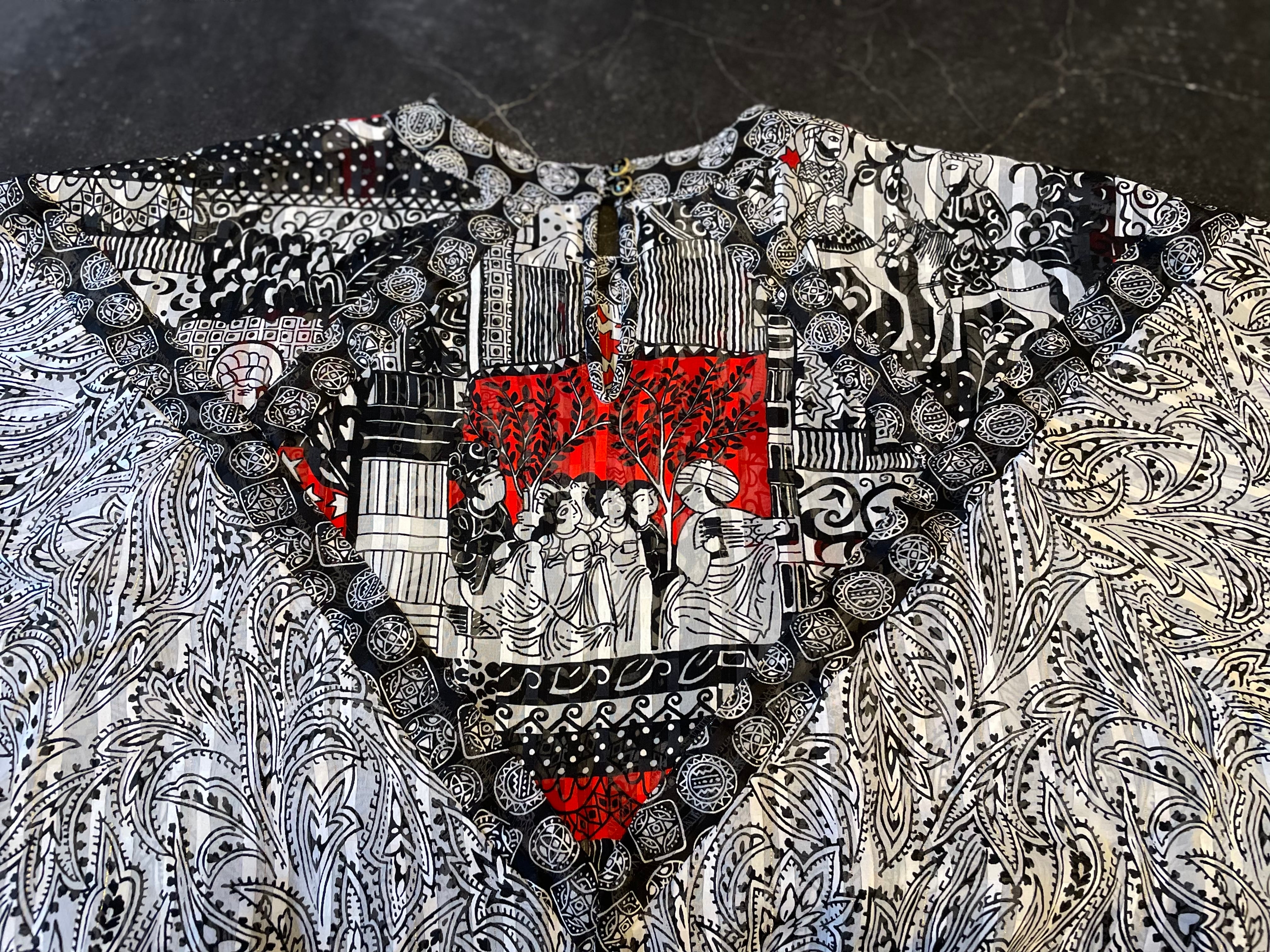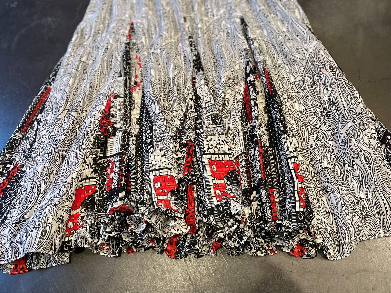 上質なポリエステルジョーゼットの生地を使い、鮮やかなプリント、大胆な柄パターンの組み合わせは当時とても新しく革新的で大ブレイクしました。