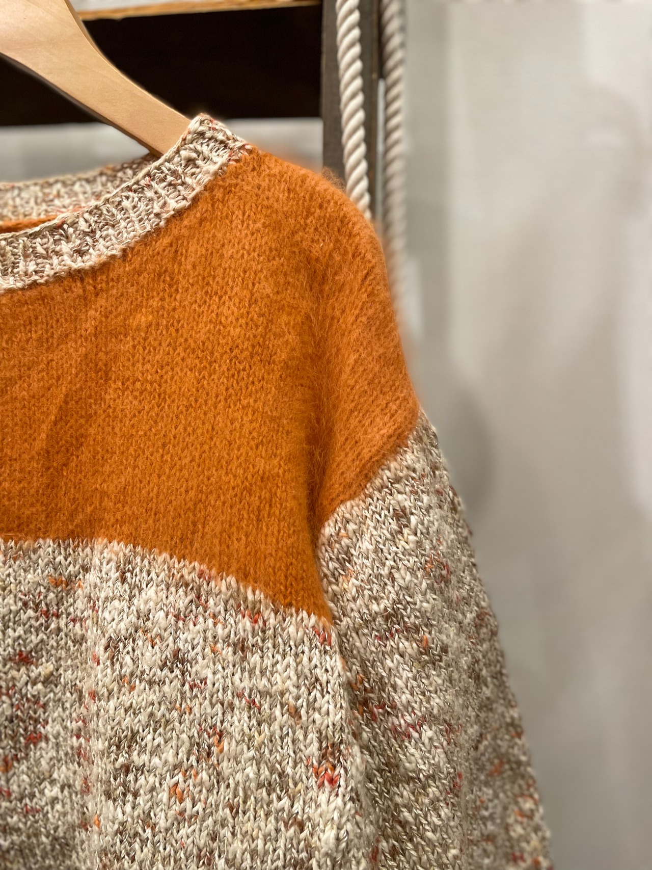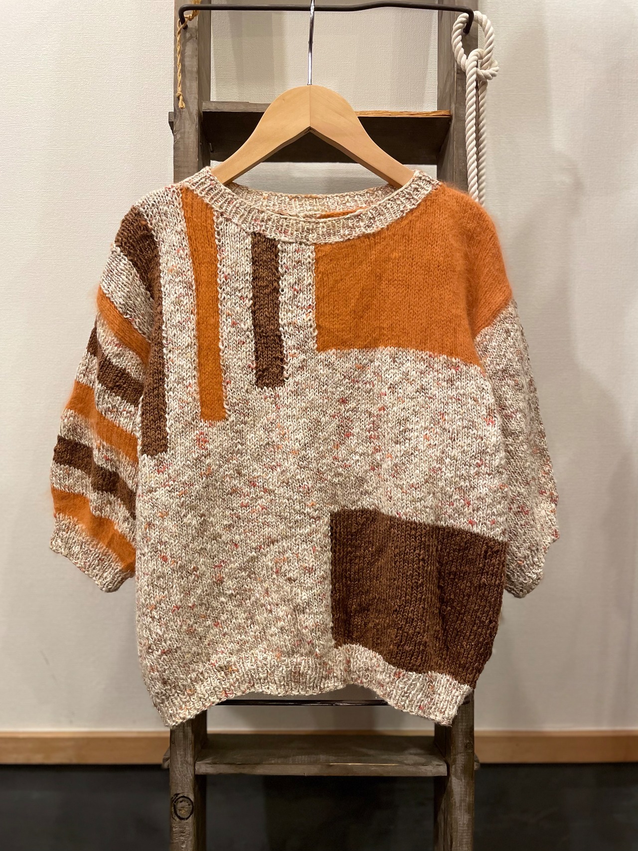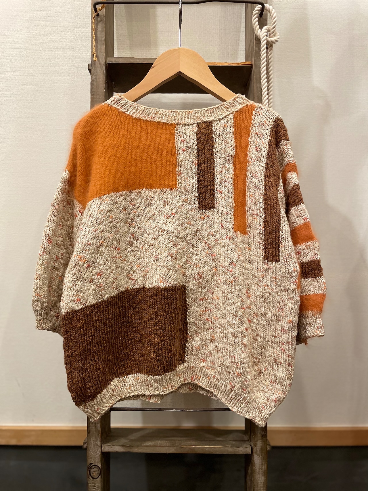 オレンジの箇所には肌触りの良いおそらくモヘアを使用し、ハンドニットとは思えないほどのハイクオリティな1着♪