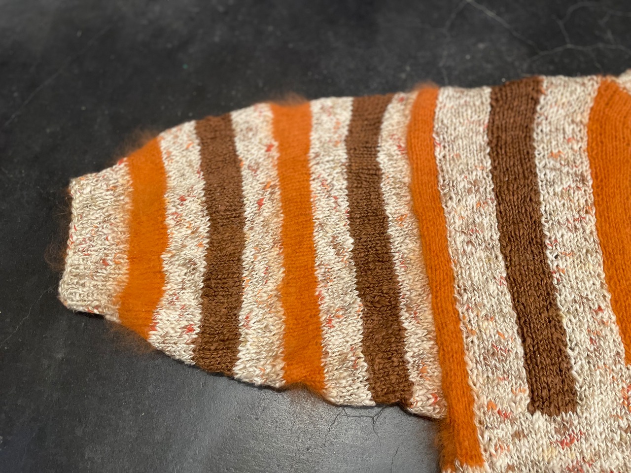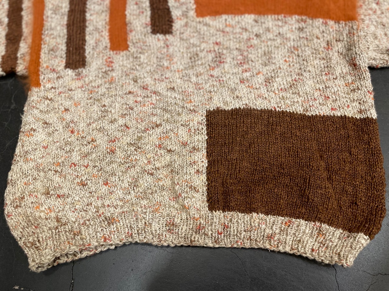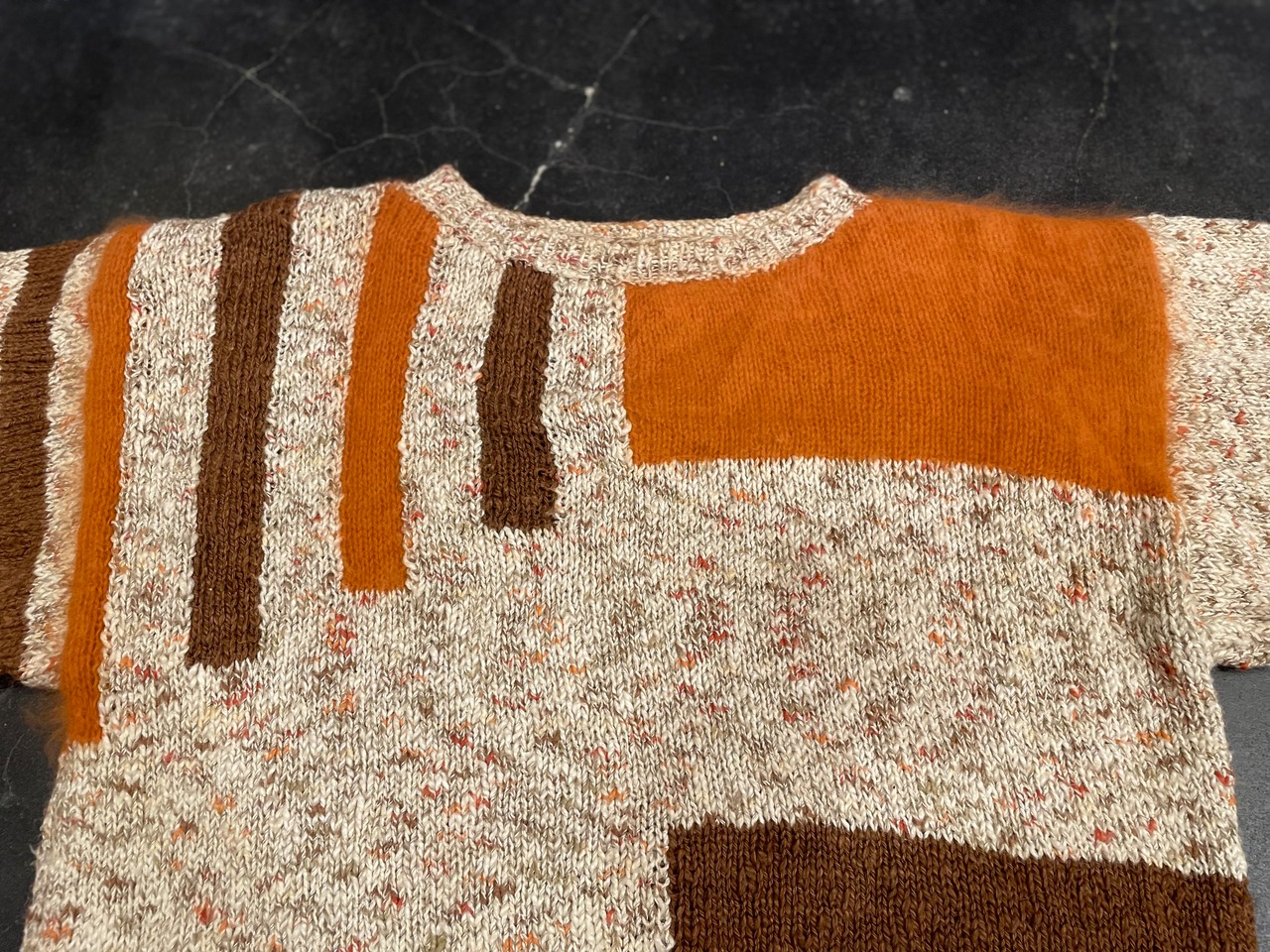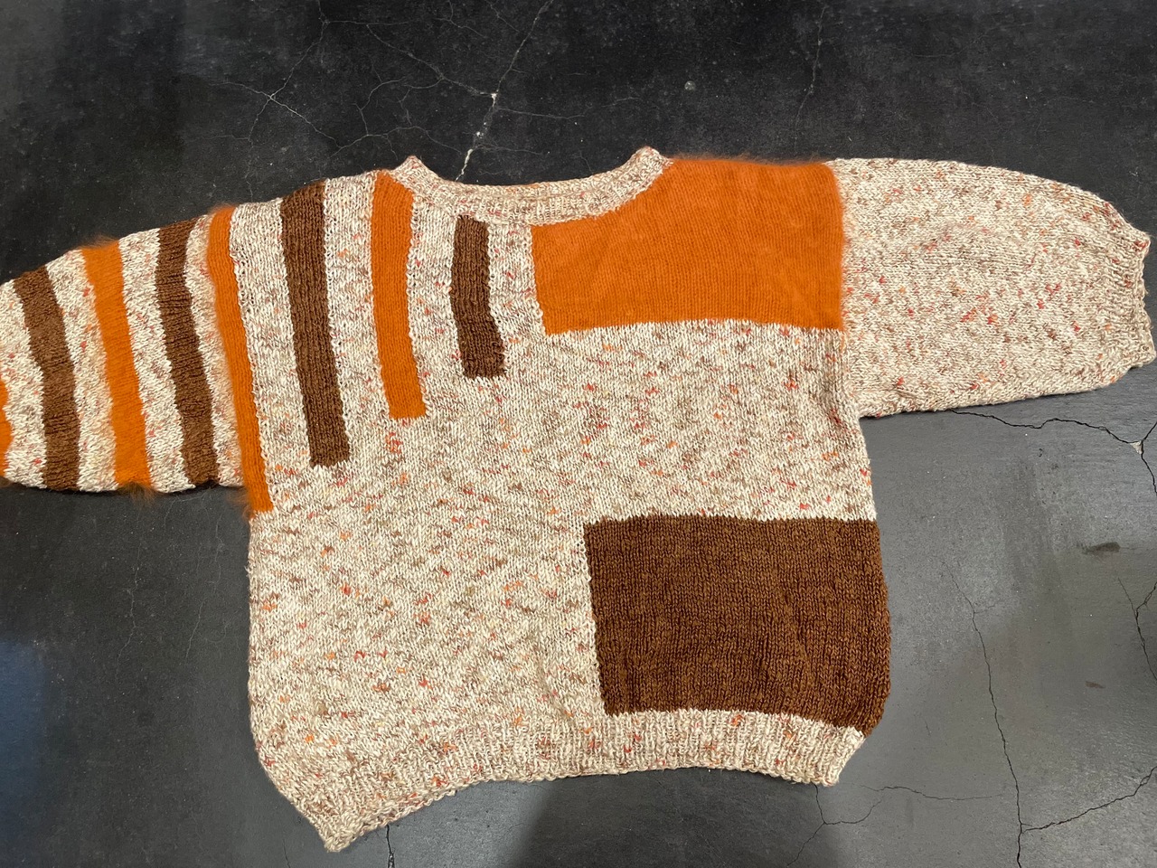 オレンジの箇所には肌触りの良いおそらくモヘアを使用し、ハンドニットとは思えないほどのハイクオリティな1着♪