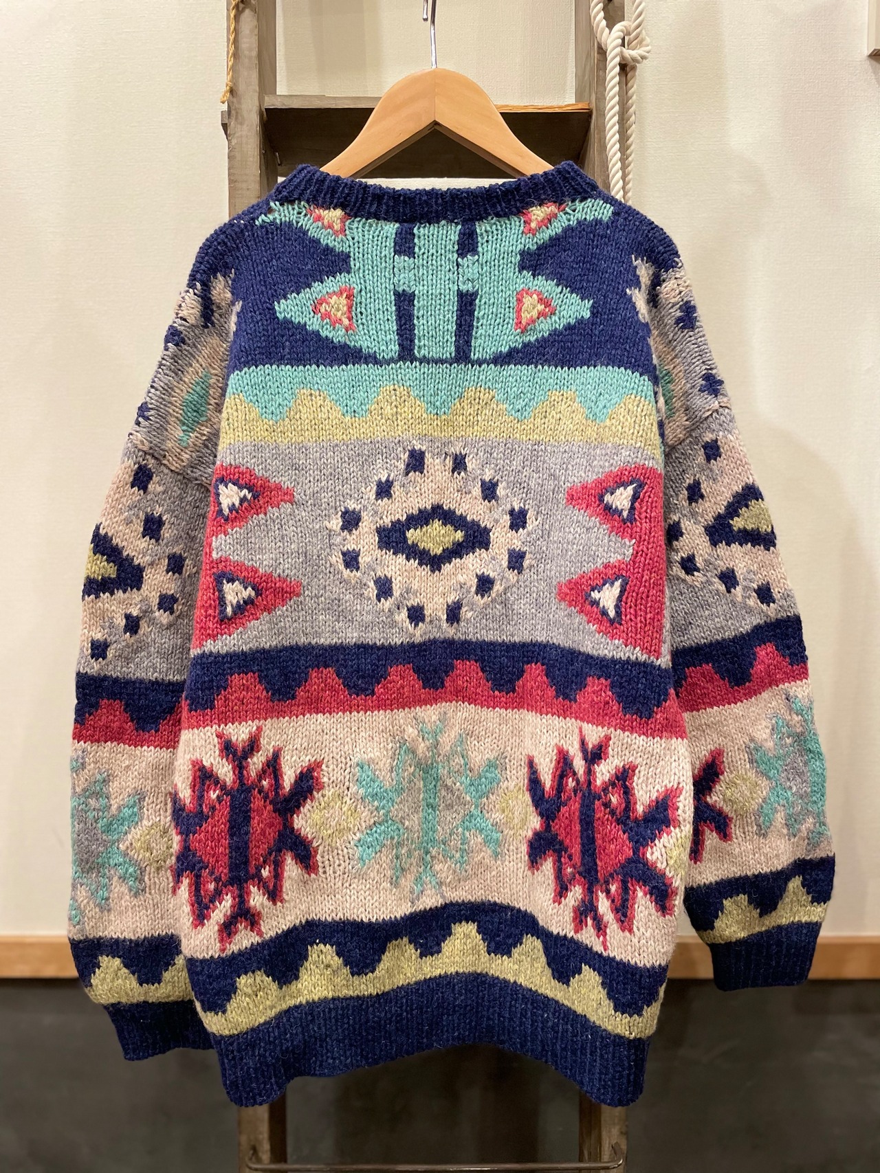 大胆なネイティブデザインが素敵なビンテージハンドニット。