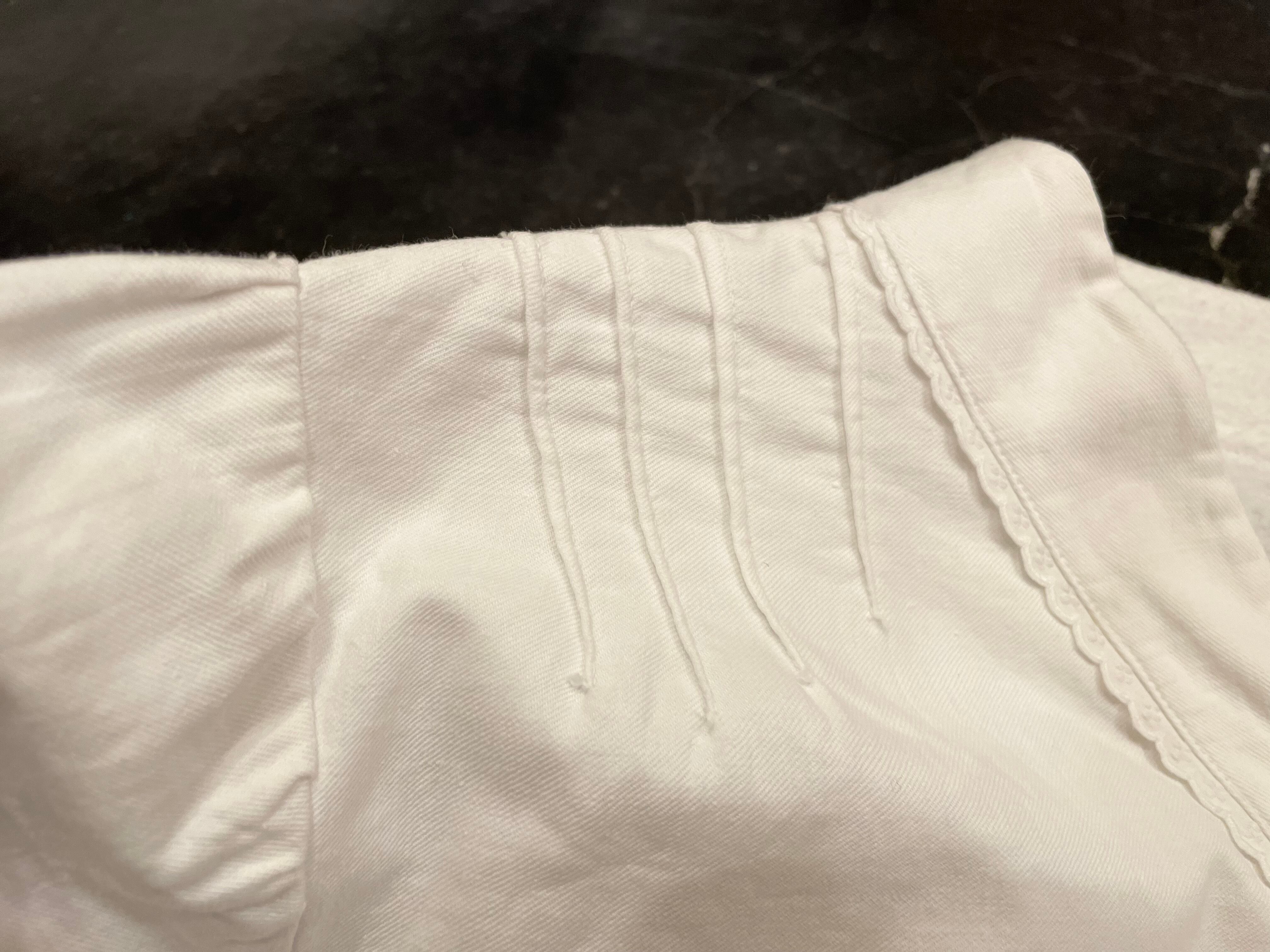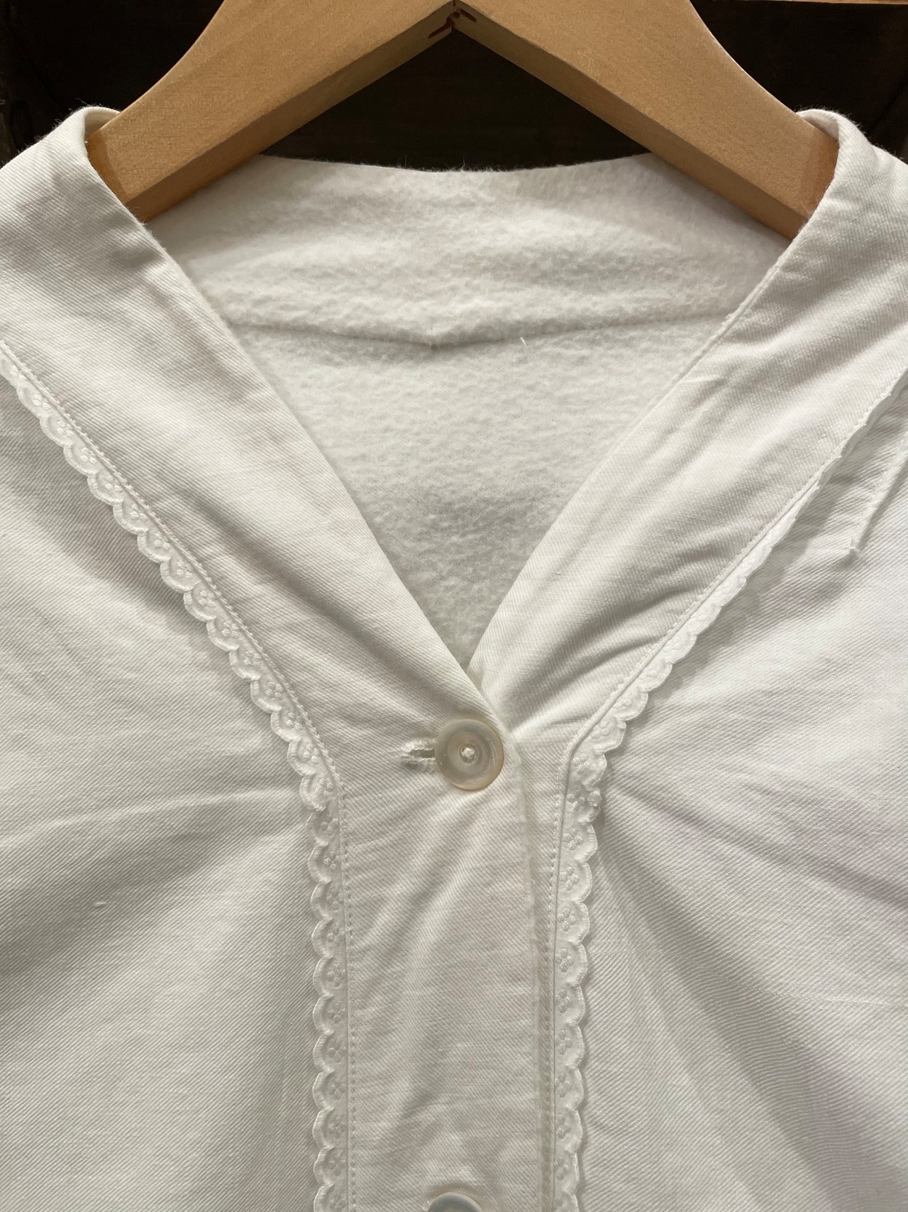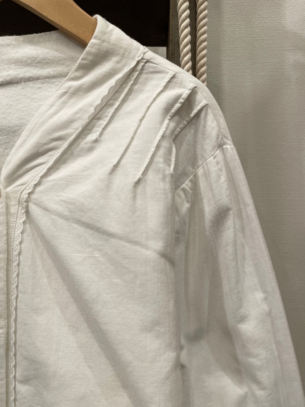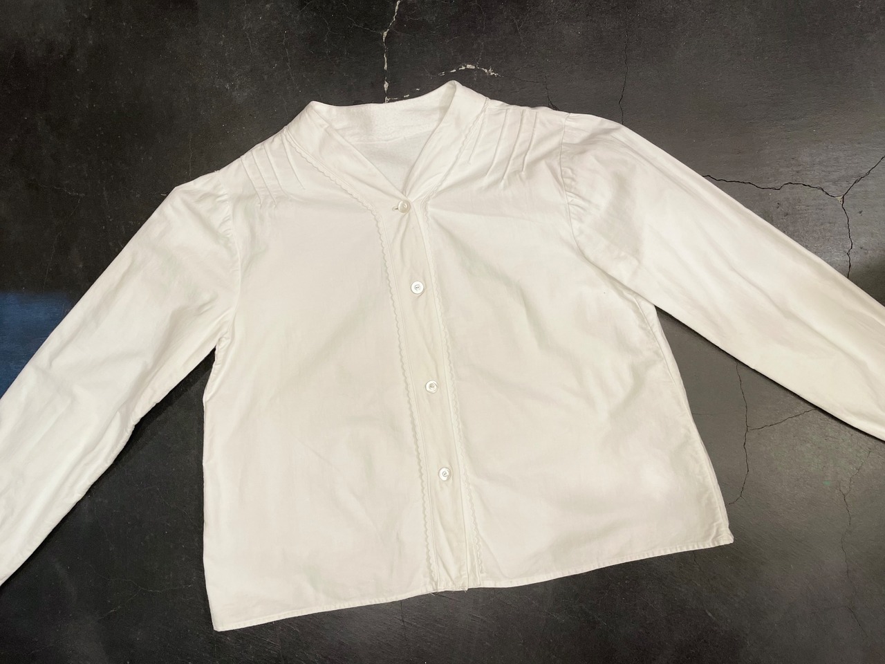 風合いのある生地に、細かいダーツやピンタック、華やかなシェルボタン等の素晴らしいクオリティで、年々希少価値が上がるビンテージアイテムの1つです。