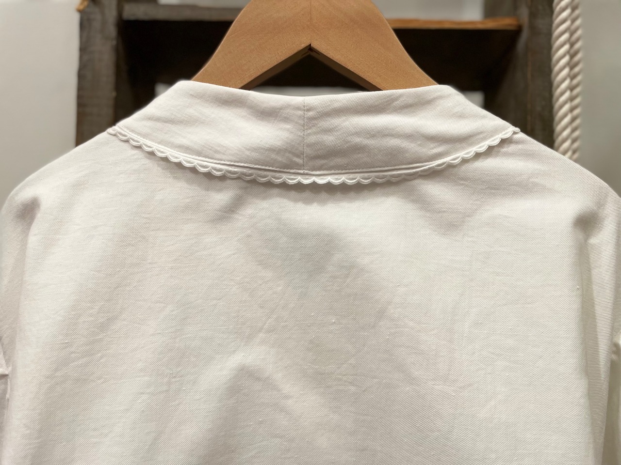 中でも襟付きはよくありますが、こちらは襟が無く、裏地はフランネル仕様で柔らかい生地なので着用時にストレスが無く全体的にゆとりのあるシルエットで、ラフに着れるのが嬉しいポイント◎◎◎
