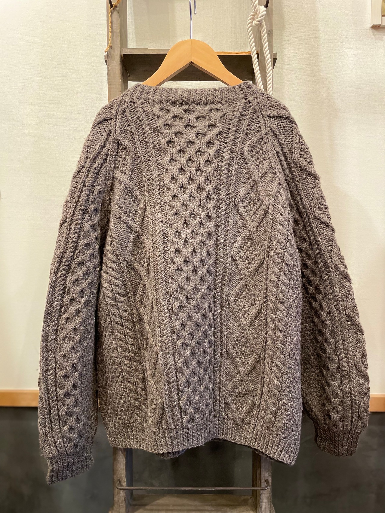 持っていると何かと便利なフィッシャーマンニットですが、こちらはグレーとブラウンを混ぜたような絶妙な優しい色味が最高にgood!!!