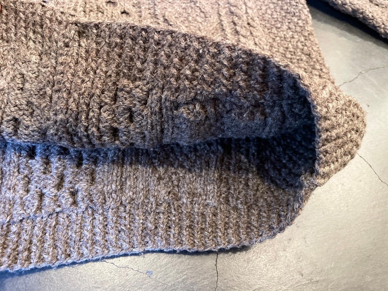 バランスの良い立体的な編み方がオシャレで、編み柄が繋がるように計算されたポケット位置もこだわりを感じ、個人的に良いなと思いました◎◎◎