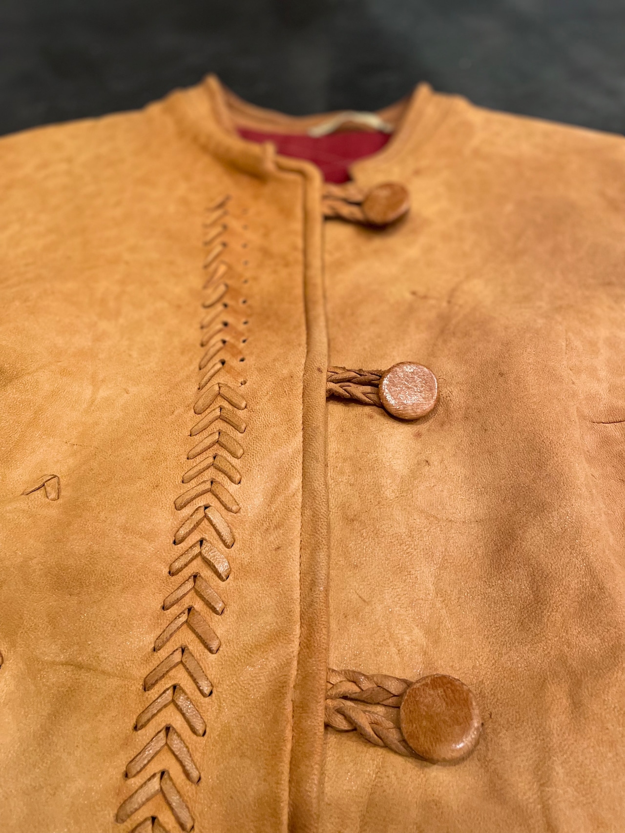 すっきりしたマオカラーに、フィッシュボーンのような特徴的な編み上げが随所に施されててナイスアクセント◎◎◎