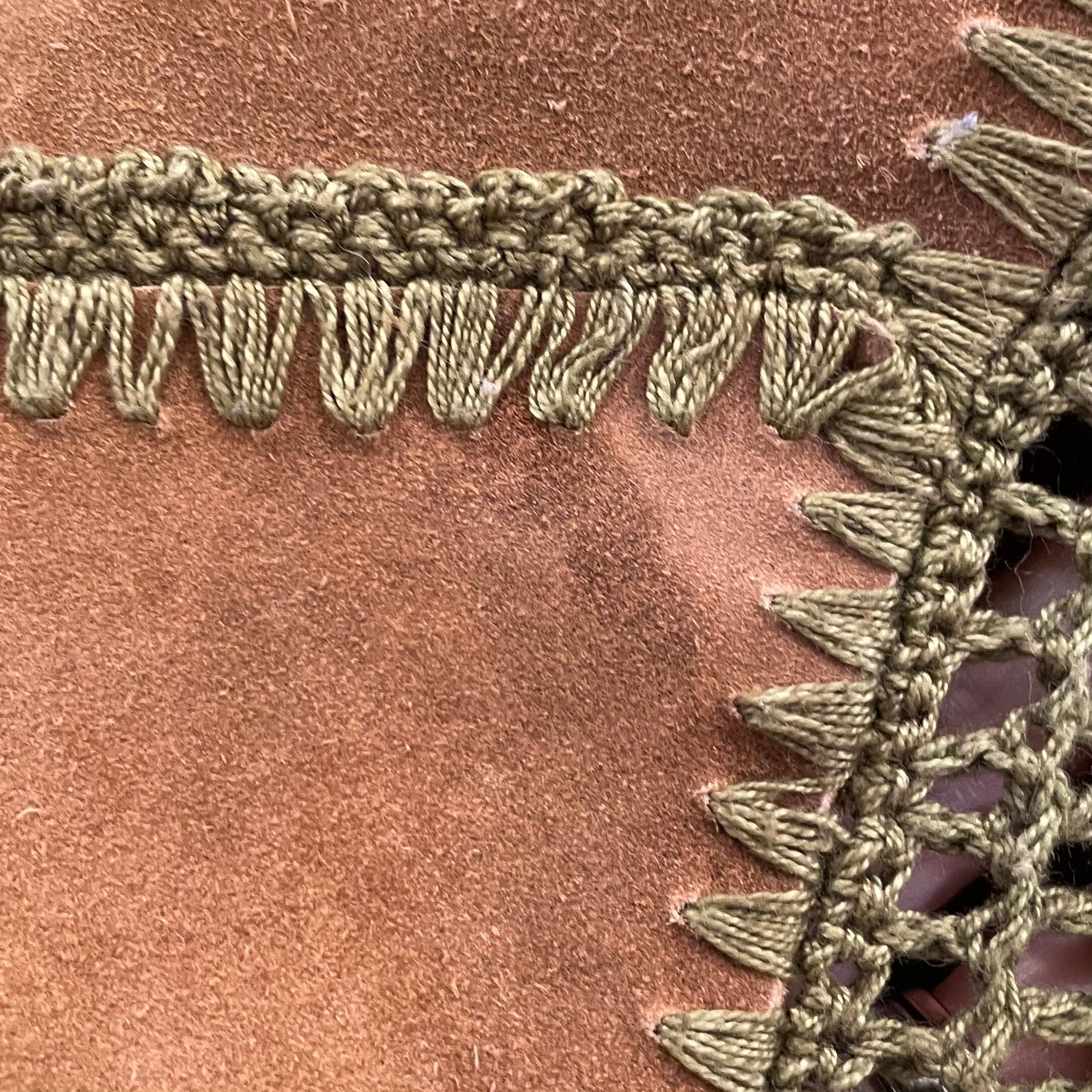 雰囲気のあるレザーをクロシェで丁寧に繋ぎ合わせたグッドピース◎