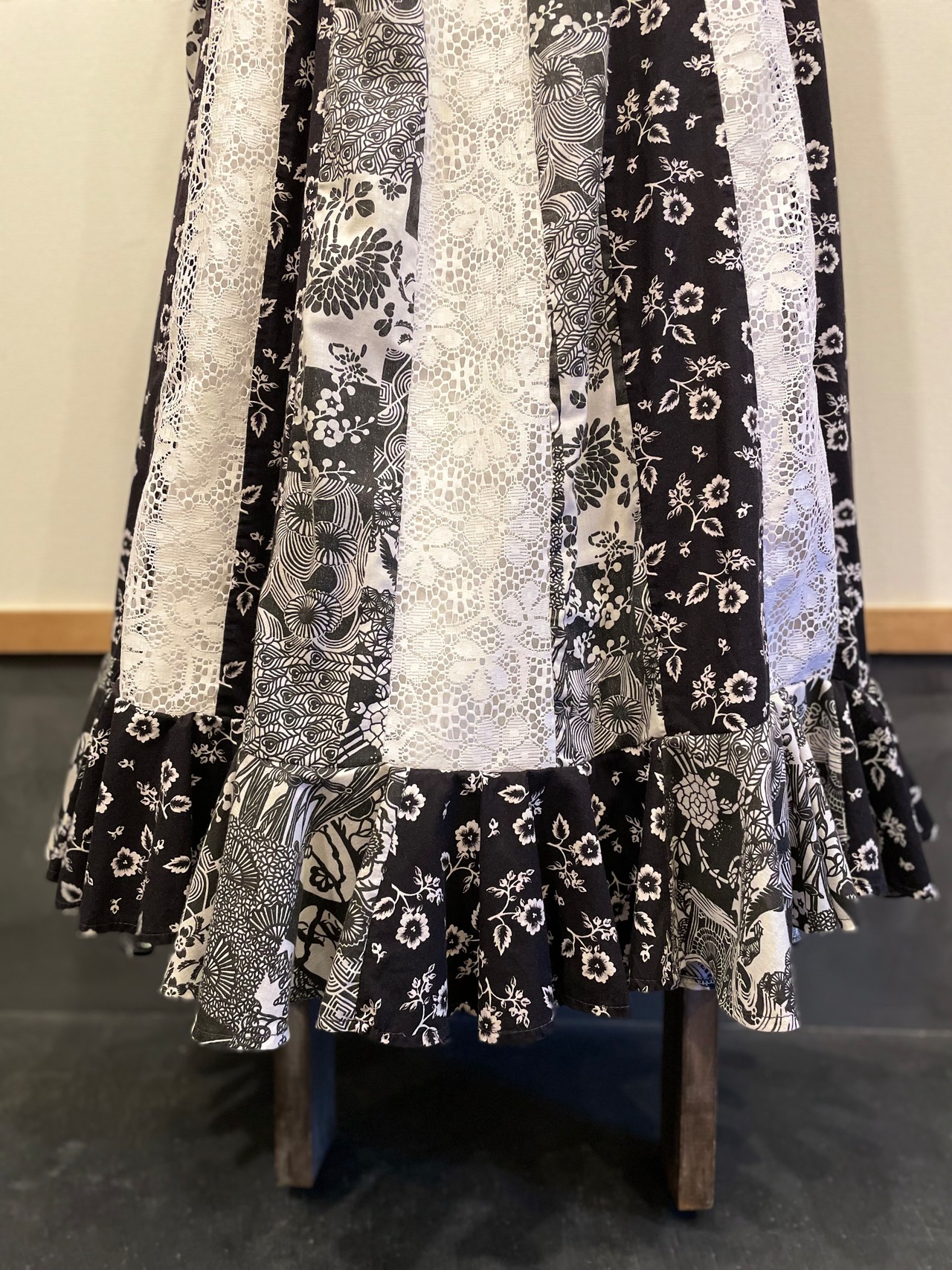 テイストの違った花柄とフラワーレースの生地を繋ぎ合わせた贅沢なアイテム◎