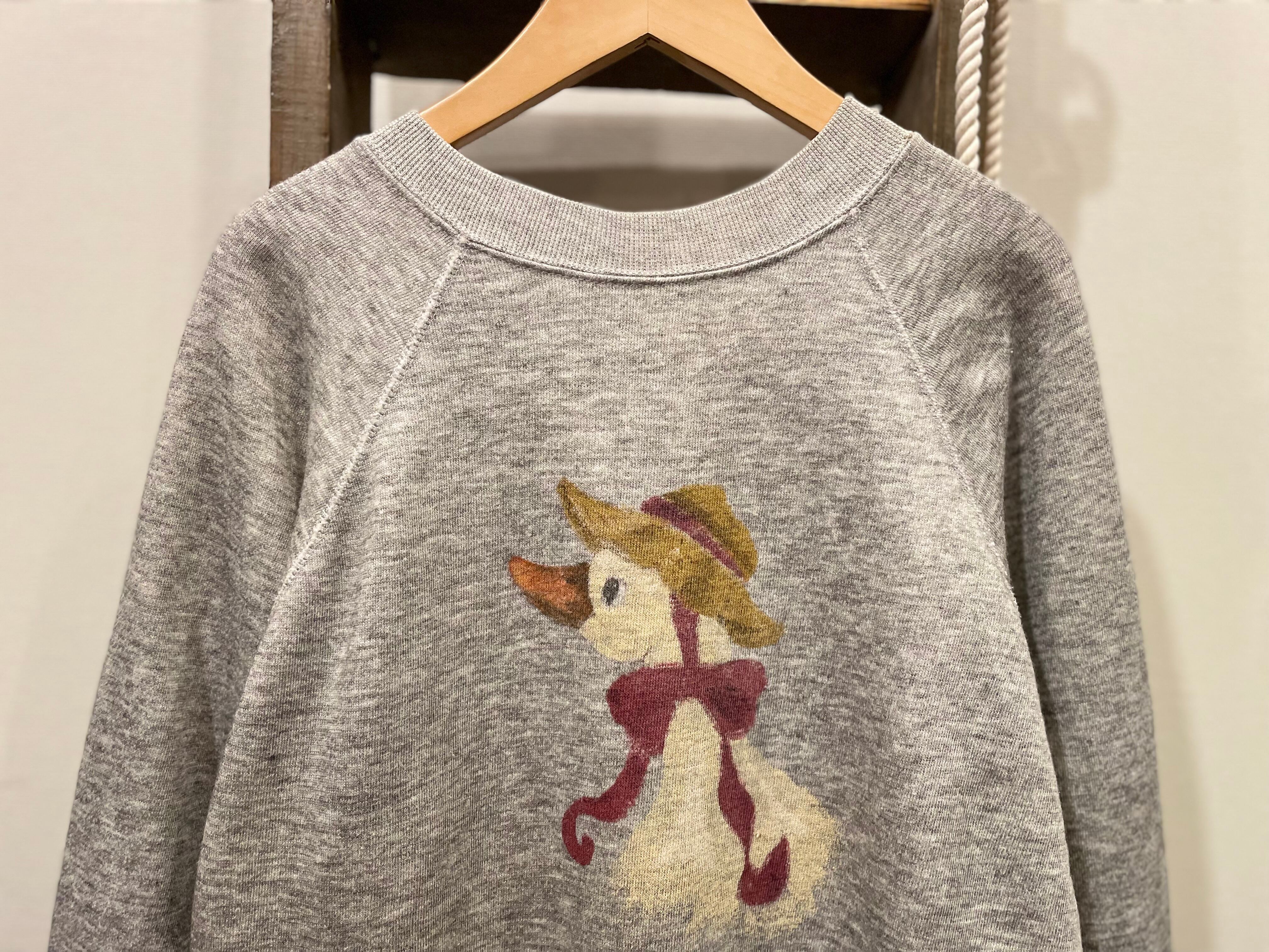 グレーボディにアヒルのハンドペイントが可愛いビンテージスウェット。