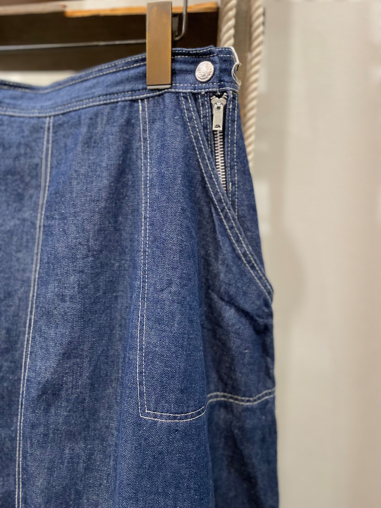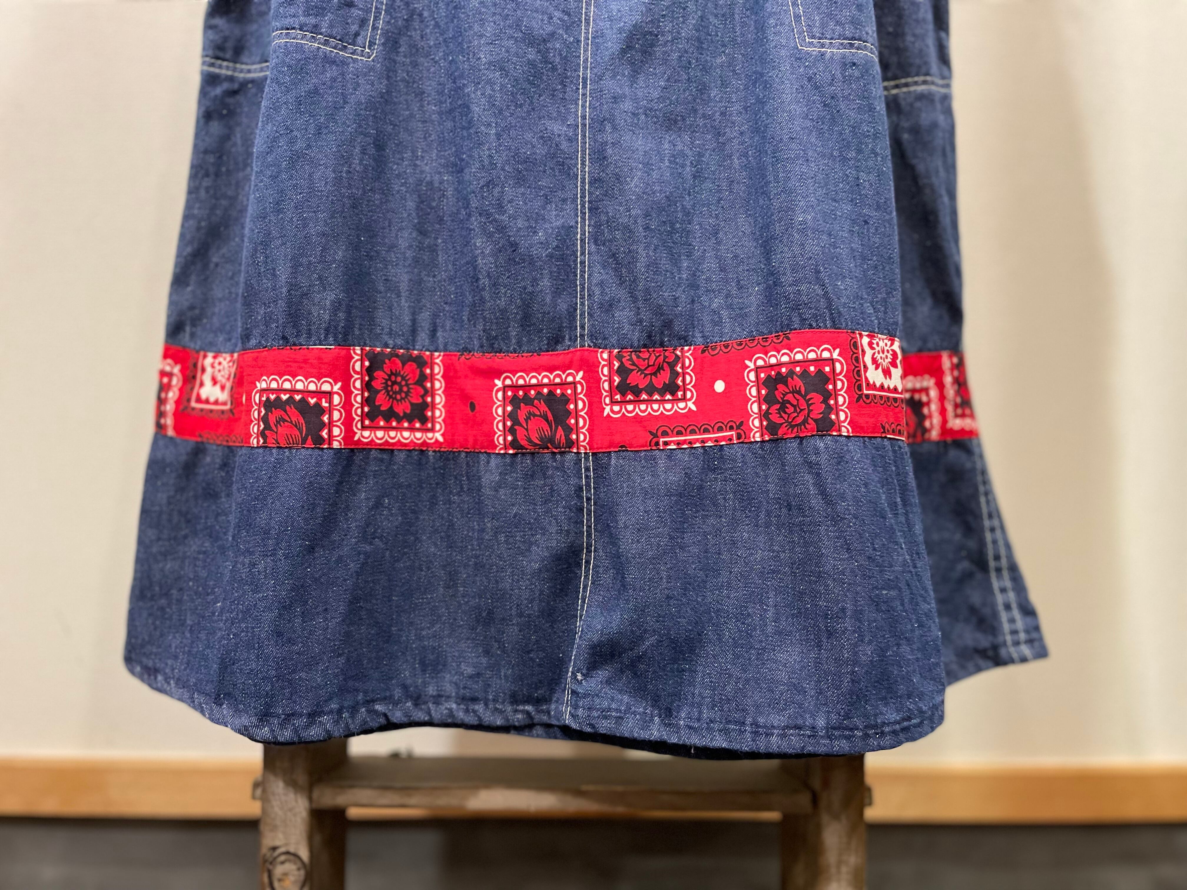 風合いのある濃紺デニムに、赤いバンダナラインが可愛いビンテージスカート。