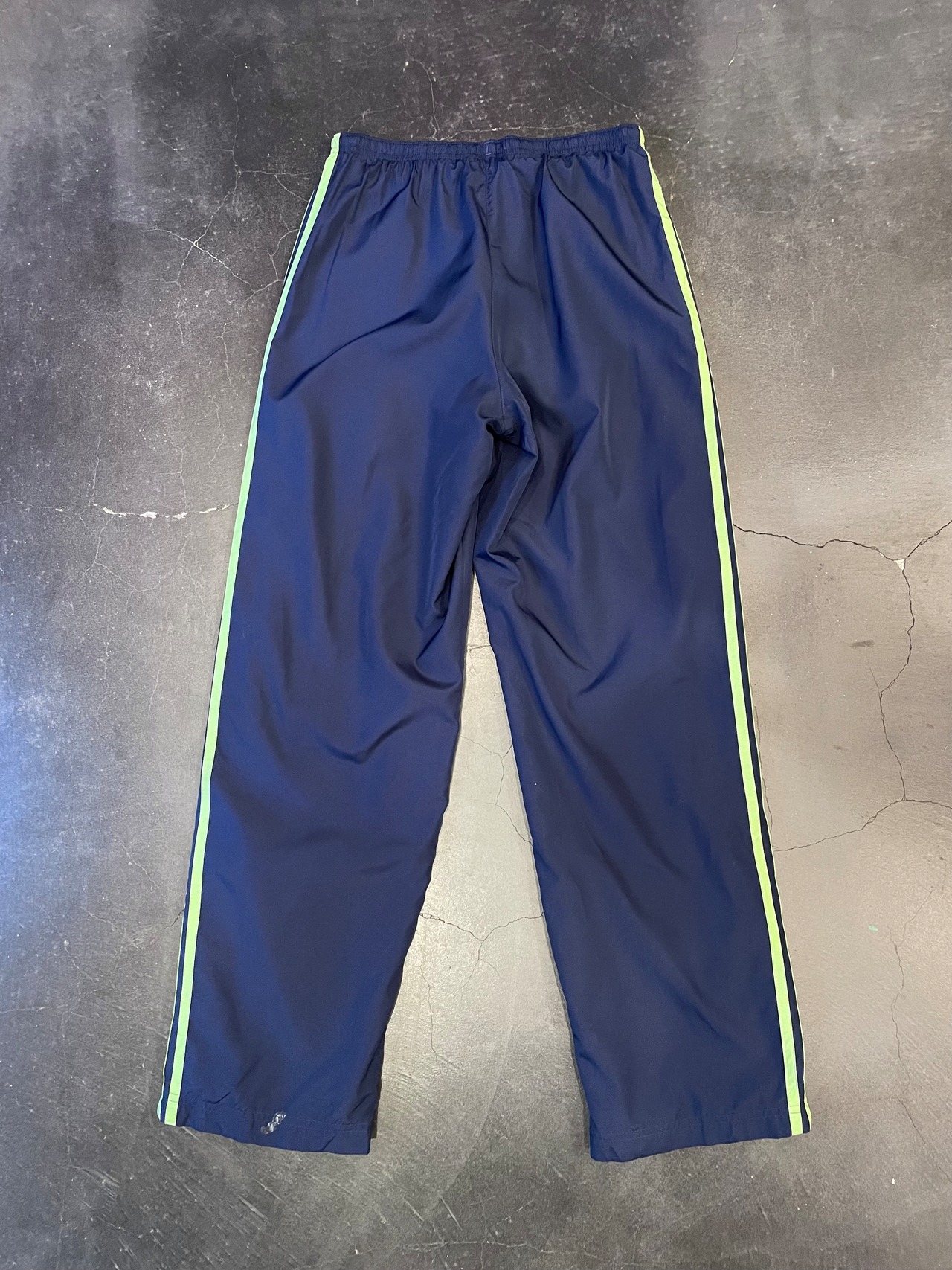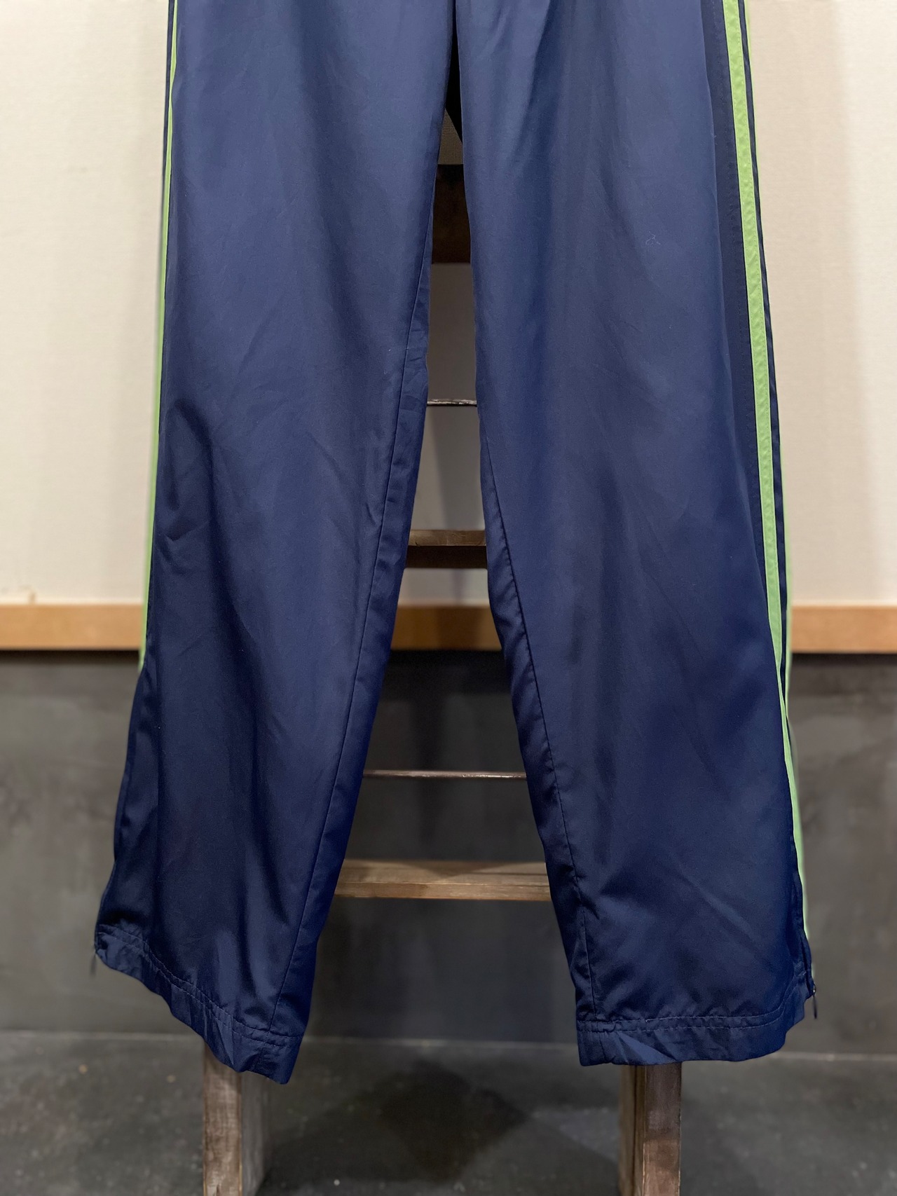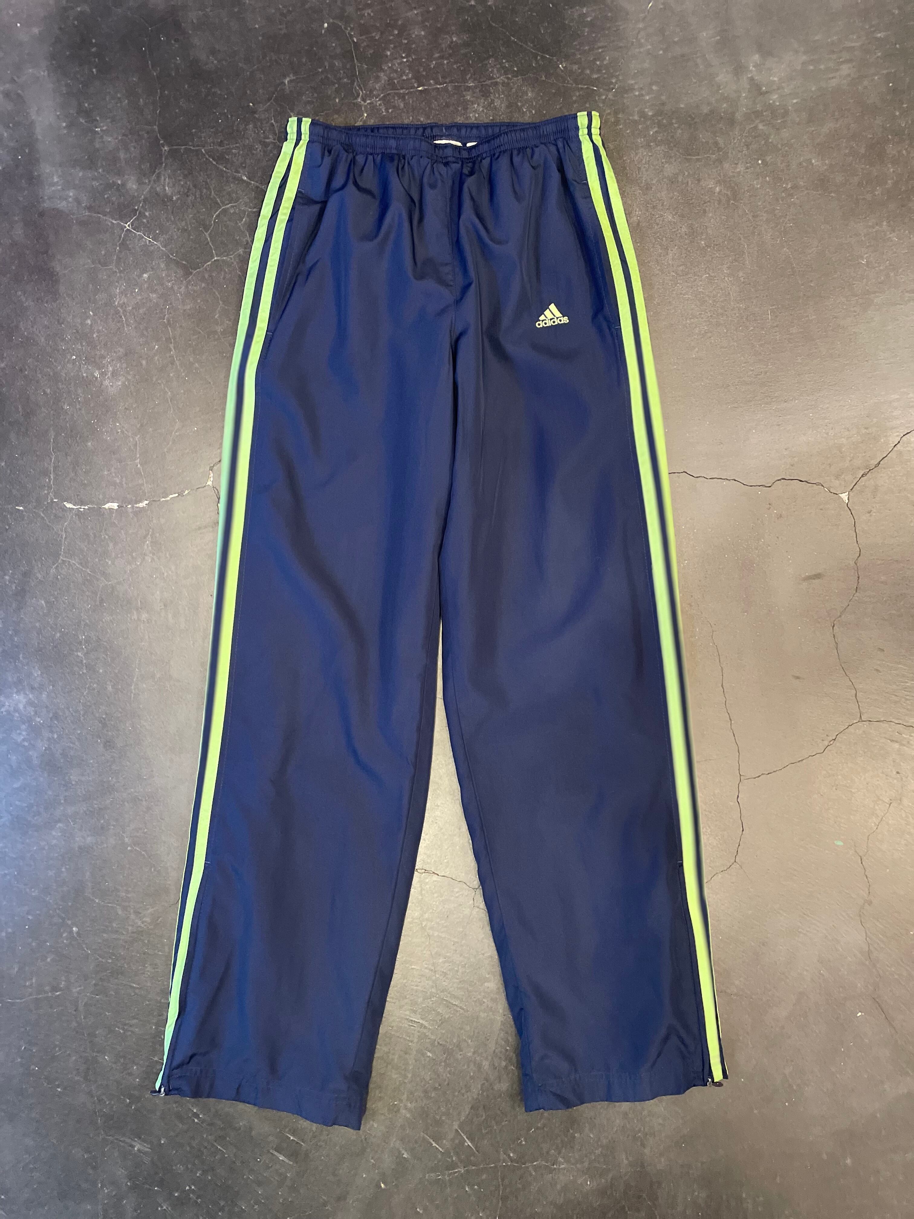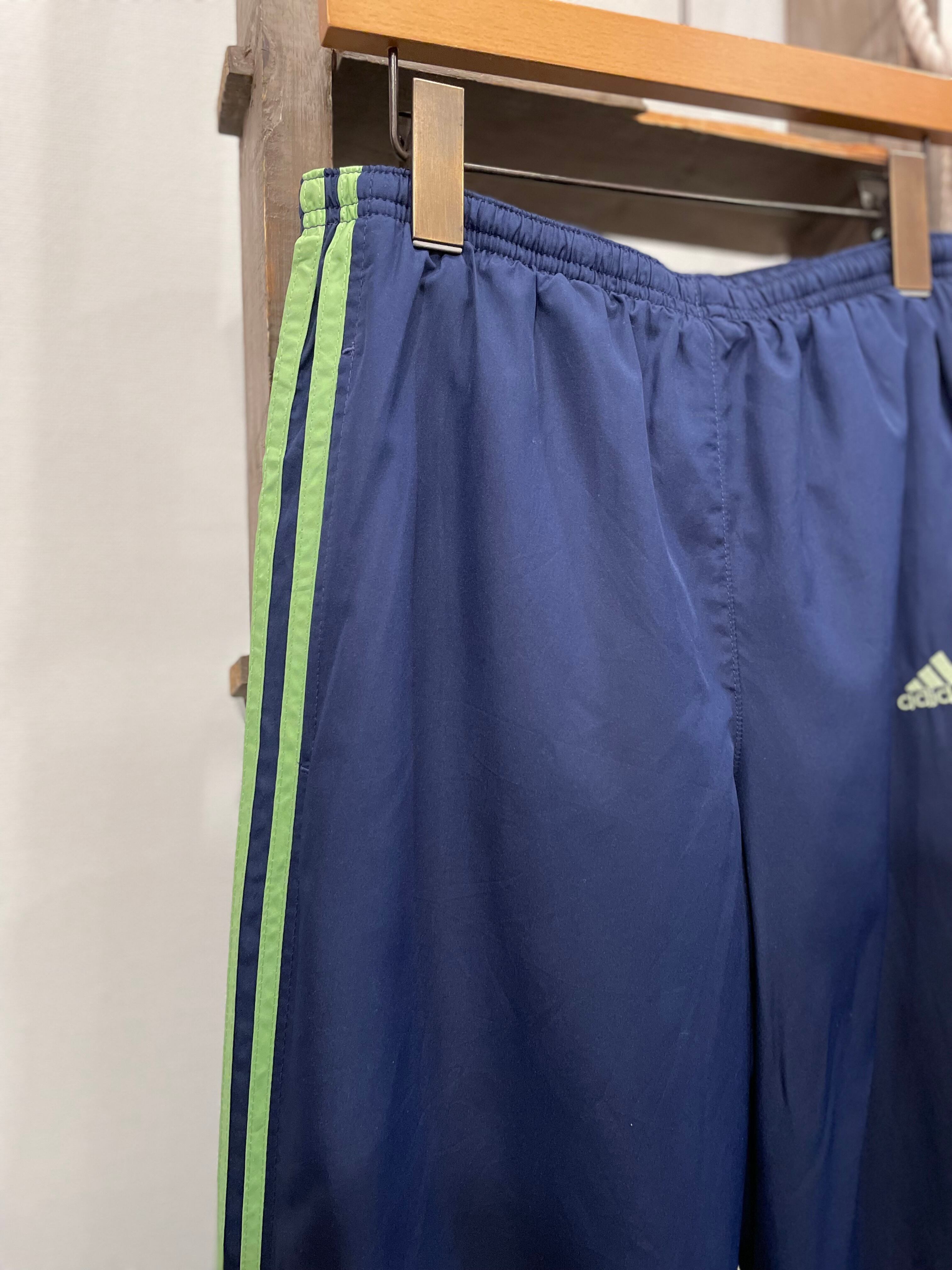 合わせやすいネイビーボディに緑ラインが映えてるアディダスのトラックパンツ。