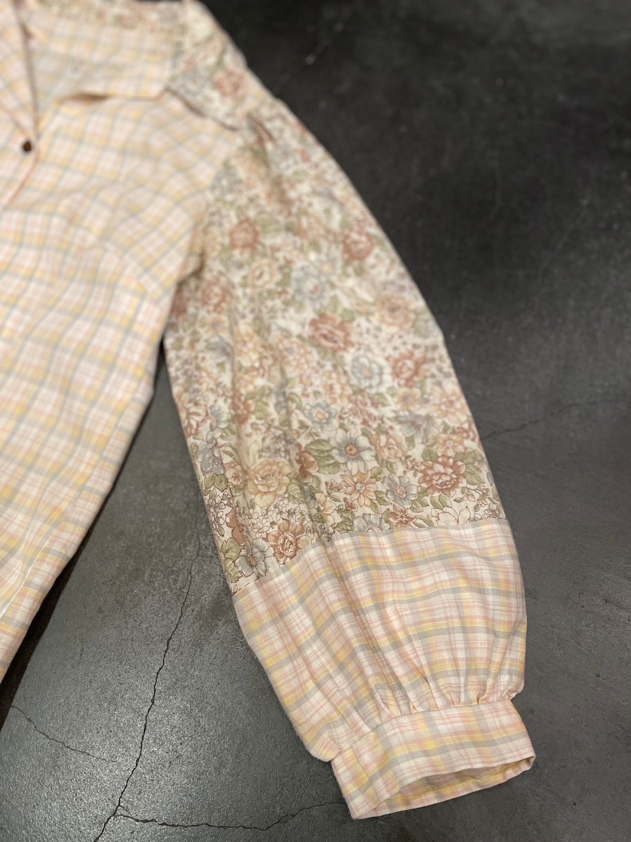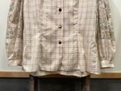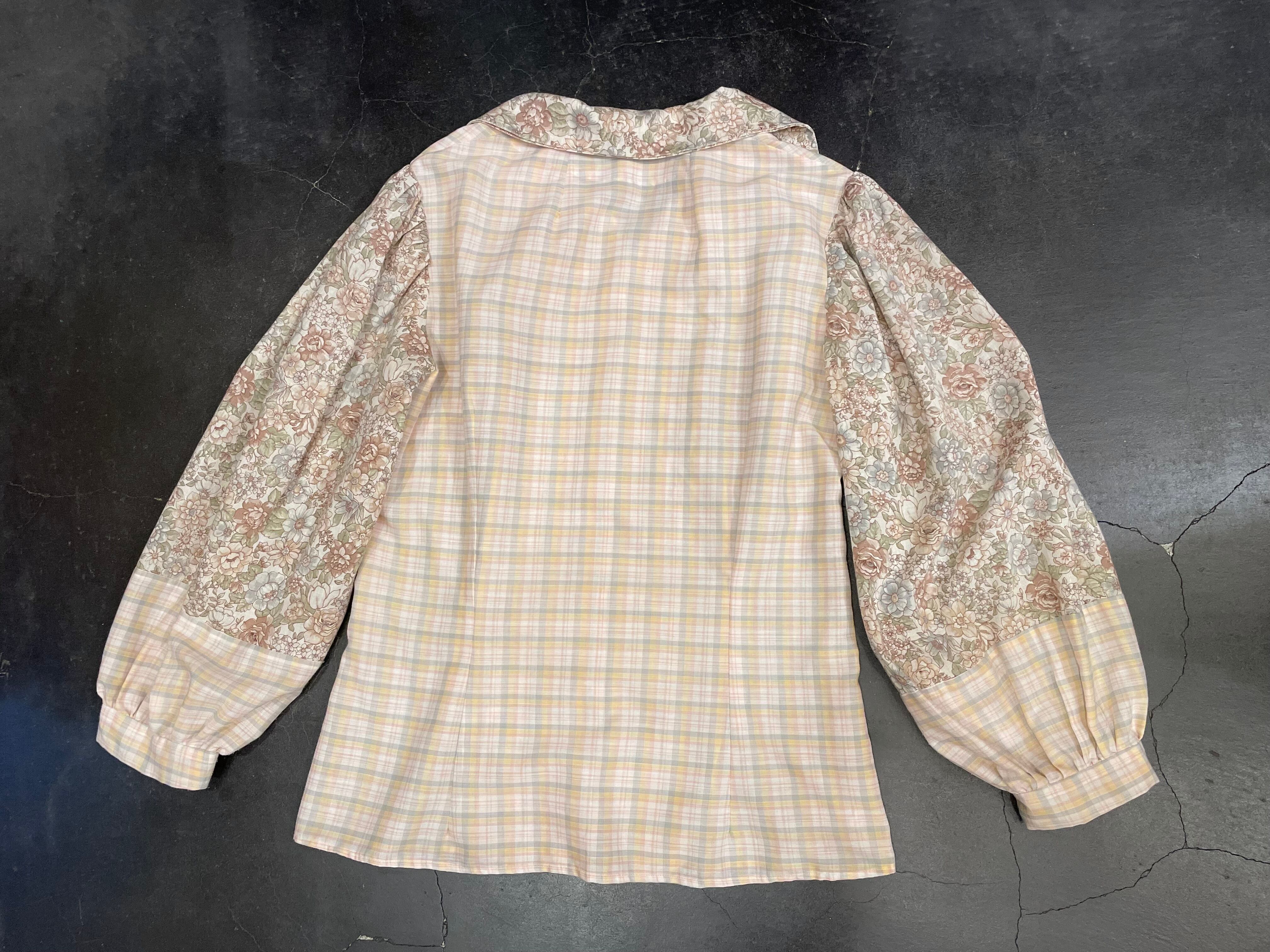 淡い花柄とチェックの切り替えが可愛いビンテージブラウス。