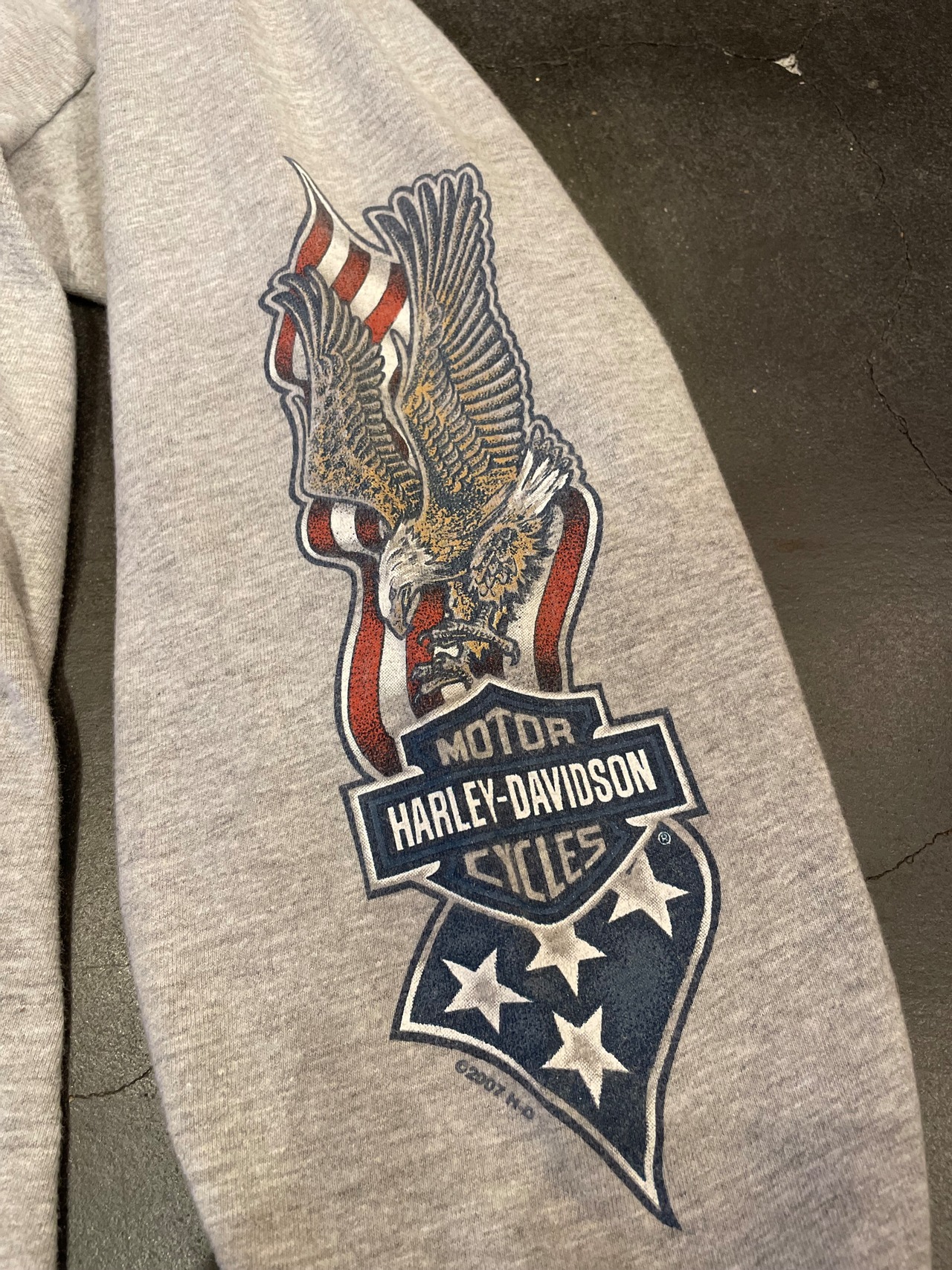 こちらはグレーボディに胸元、背面、袖に施された迫力あるハーレーらしい男前なプリントが目を惹きます◎◎◎
