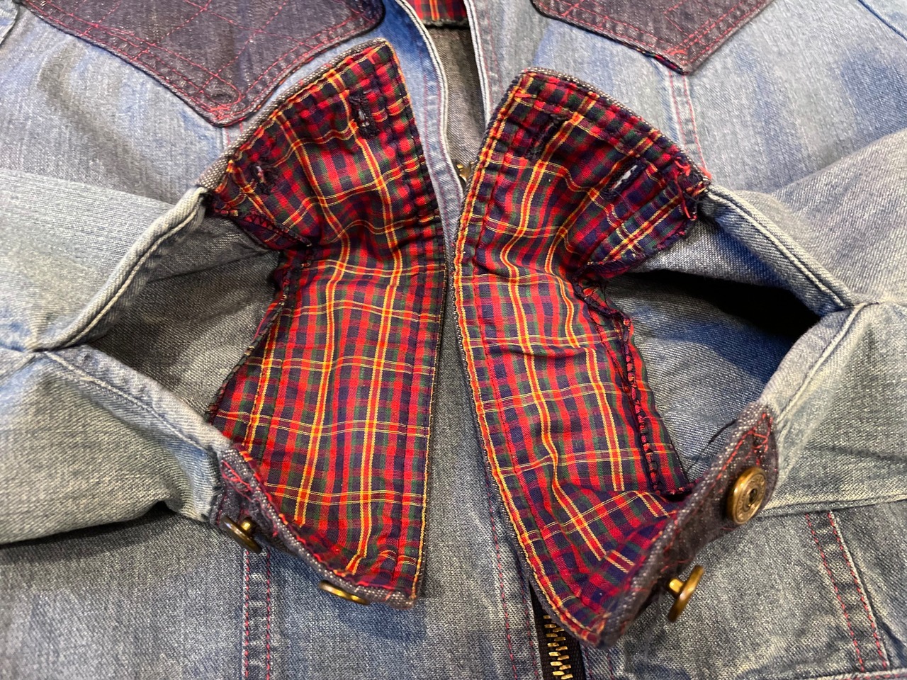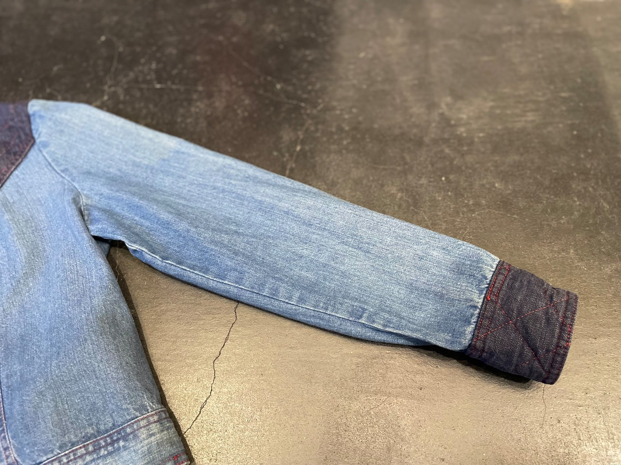 薄めから濃いめまで贅沢に使用したデニム切替が素晴らしく、肩周りや袖口等はキルティング仕様になっており、非常に手が込んでおります◎