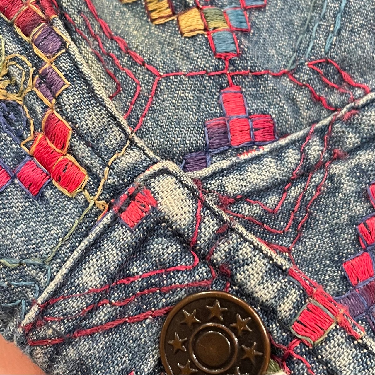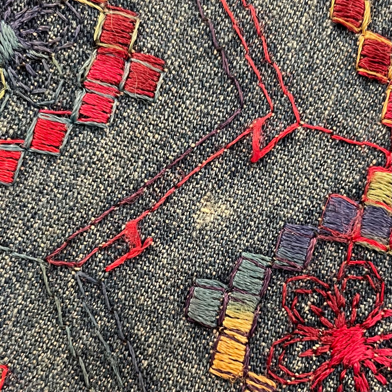 デニムボディに、テンション上がるカラフルなお花の刺繍が施されたアイテム◎