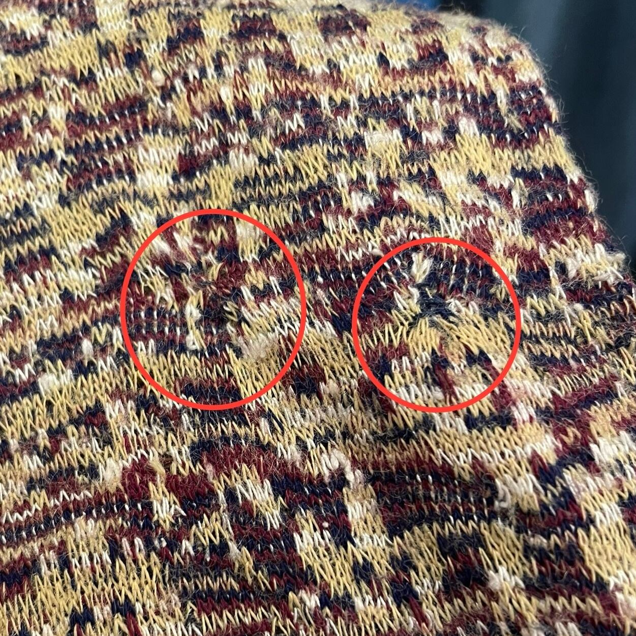 フロントに色ムラ、袖口にリペア跡がございます。