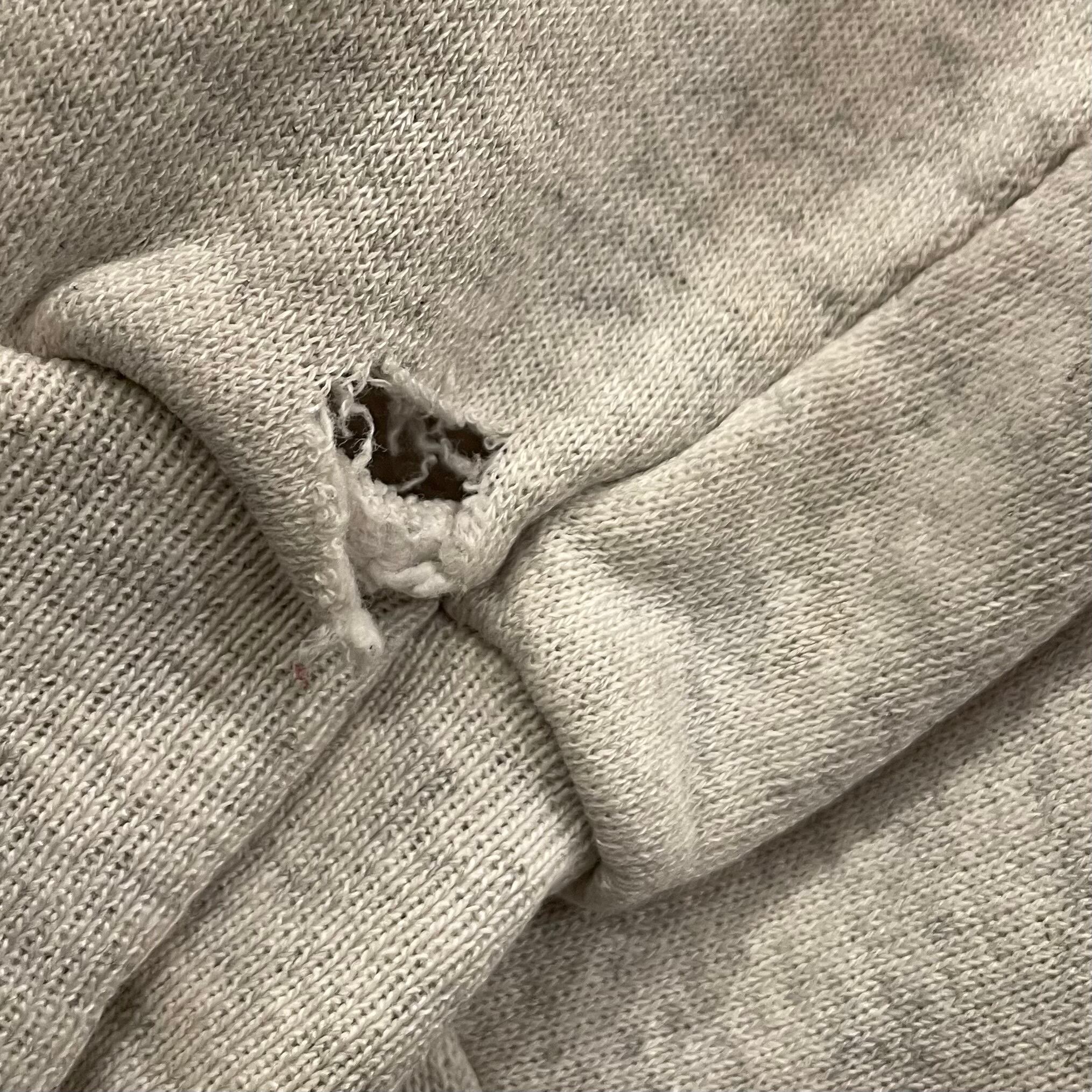 フロントと袖にペンキ痕、左袖に穴がございます。